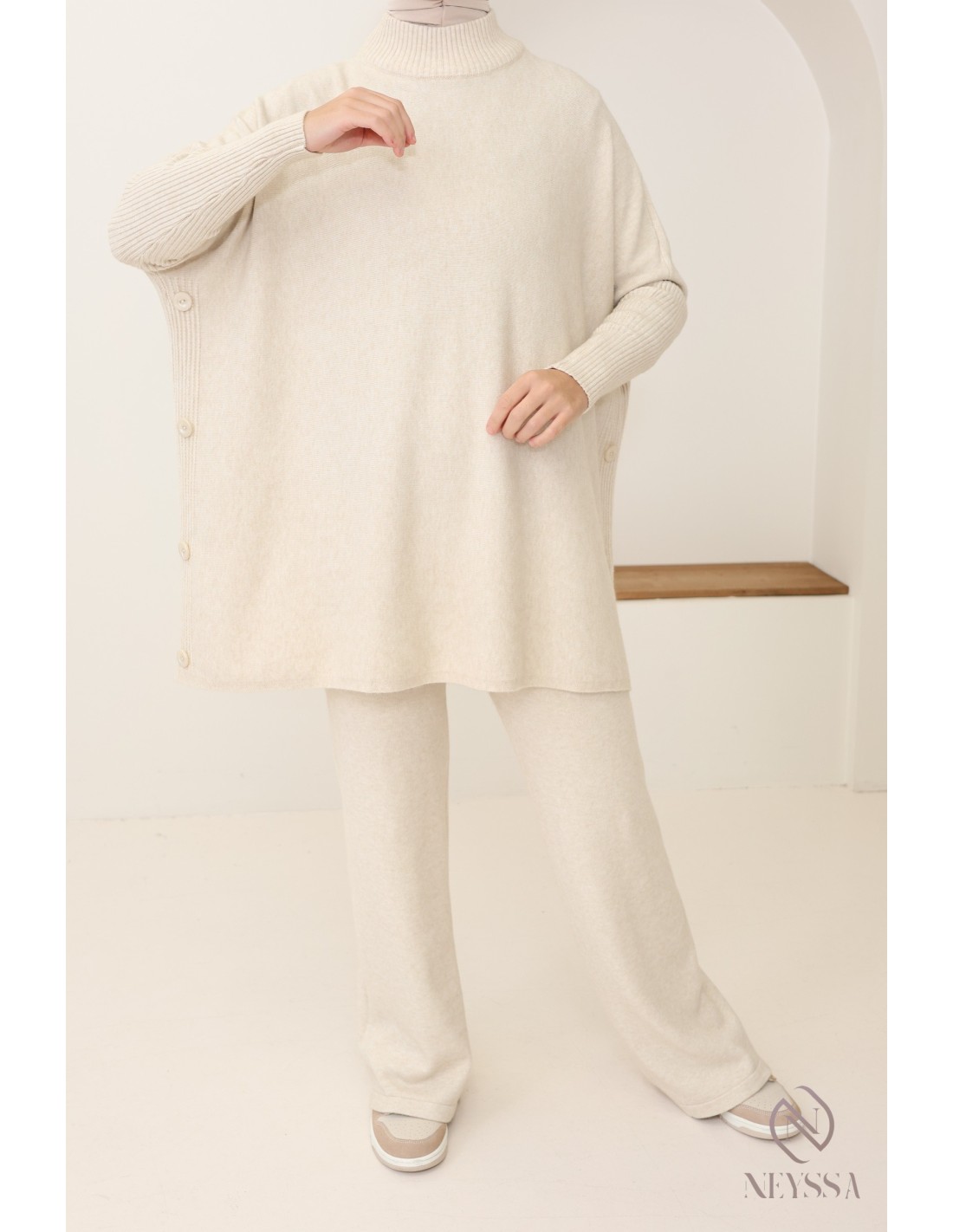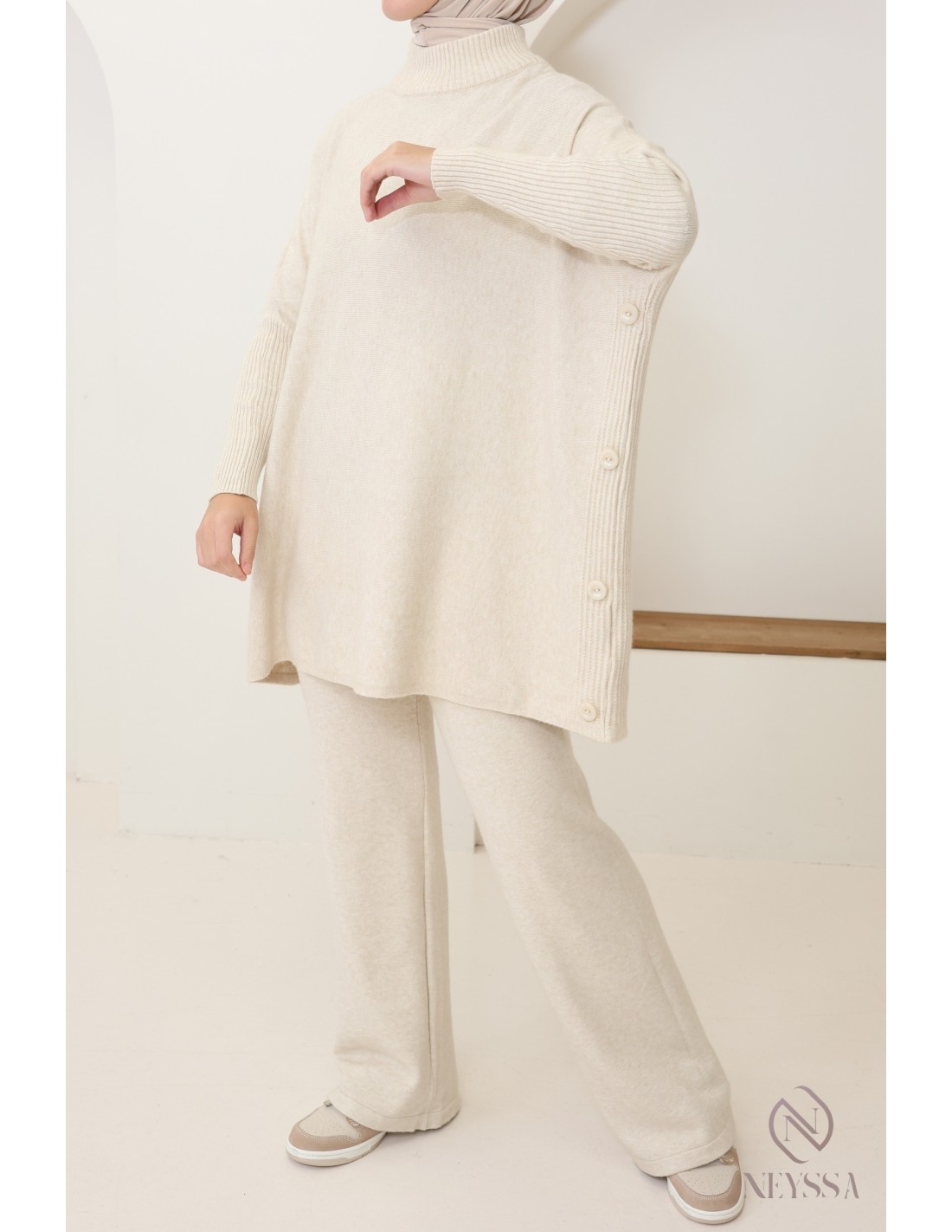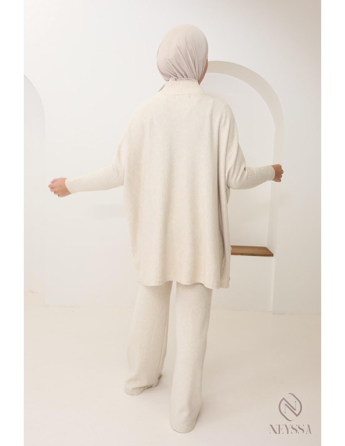 Dieses Set aus Strickpullover und Hose für Damen wurde speziell für die Bedürfnisse von Hijabi-Frauen entwickelt. Es bietet schlichte Eleganz, ohne Kompromisse bei Chic und Komfort einzugehen.