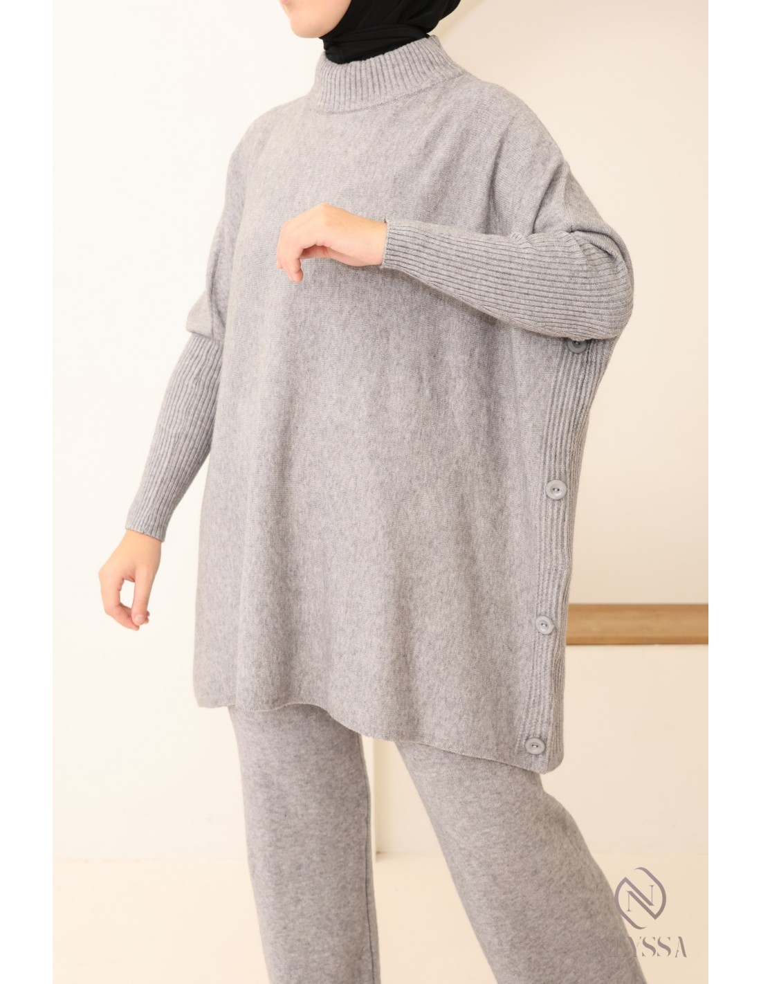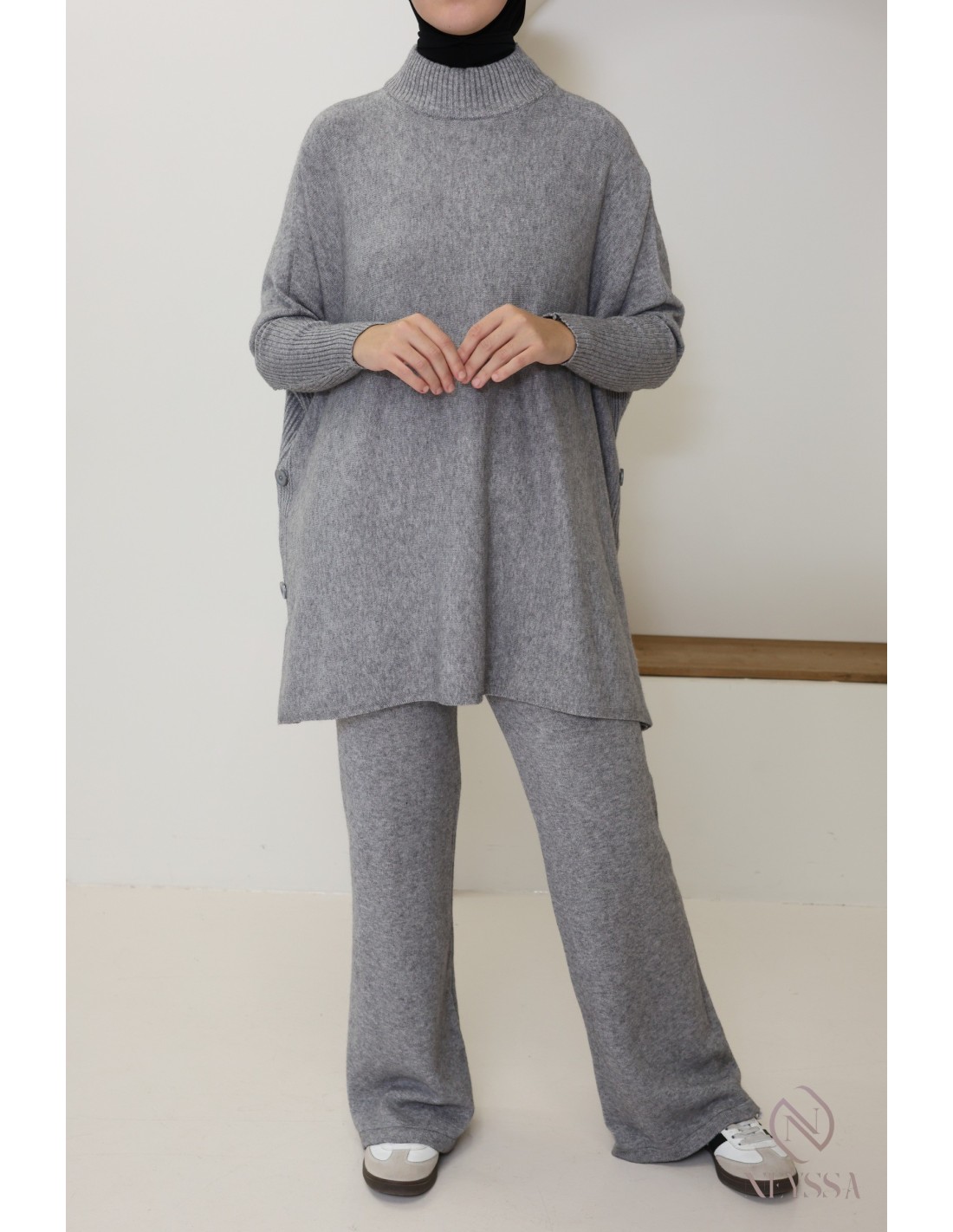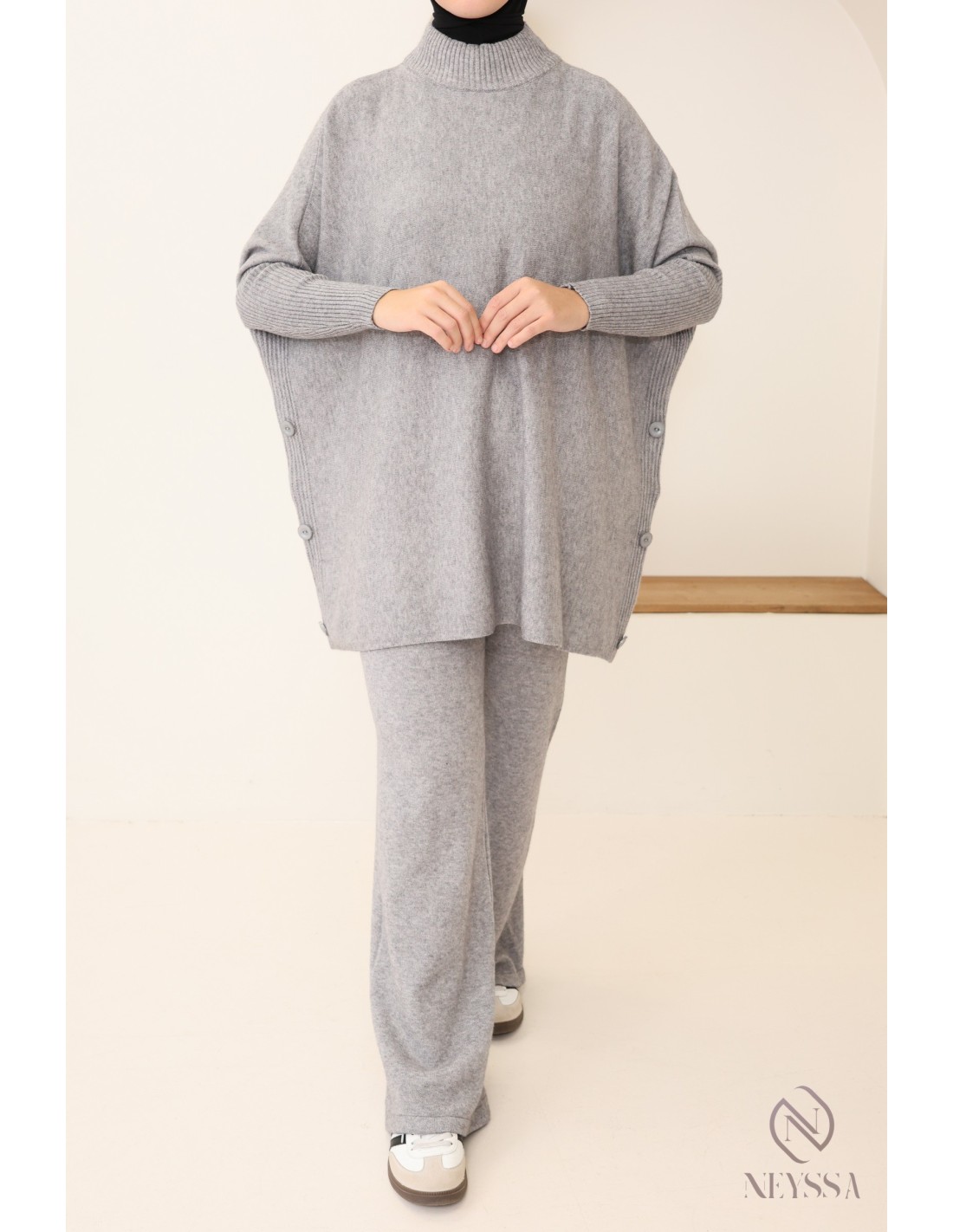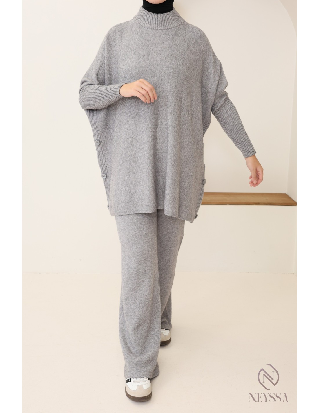 Dieses Set aus Strickpullover und Hose für Damen wurde speziell für die Bedürfnisse von Hijabi-Frauen entwickelt. Es bietet schlichte Eleganz, ohne Kompromisse bei Chic und Komfort einzugehen.