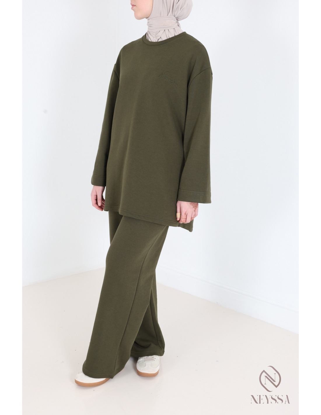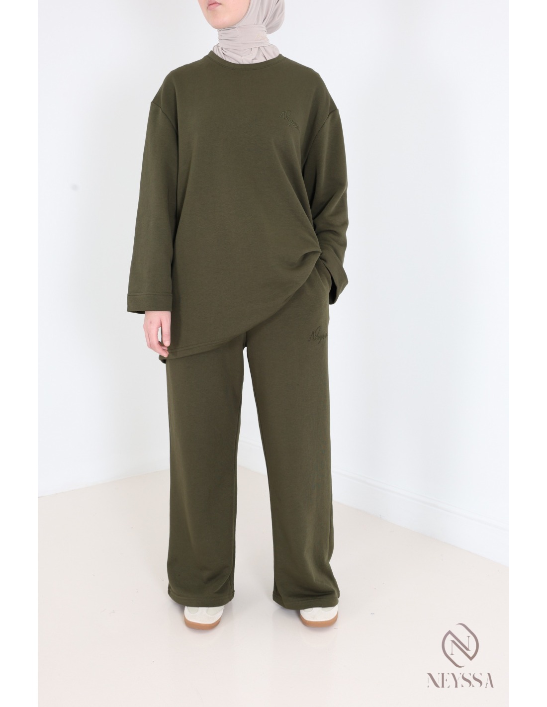 Khaki-farbenes Sportbekleidungsset aus Baumwolle für Damen