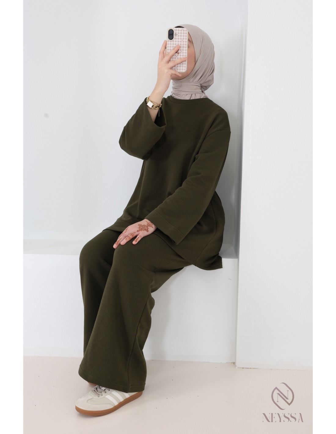 Hier ist unser Neyssa-Set für muslimische Frauen, das Eleganz und Raffinesse mit zurückhaltender Mode verbindet. Das Set mit weiten Hosen für Frauen ist aus Baumwollstoff gefertigt und garantiert Komfort und Qualität.