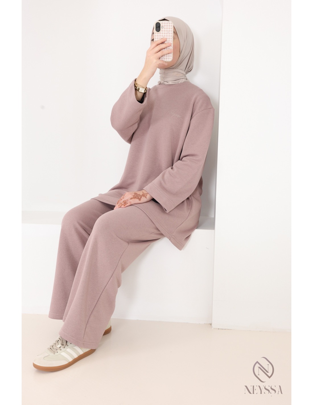 Hier ist unser Neyssa-Set für muslimische Frauen, das Eleganz und Raffinesse mit zurückhaltender Mode verbindet. Das Set mit weiten Hosen für Frauen ist aus Baumwollstoff gefertigt und garantiert Komfort und Qualität.