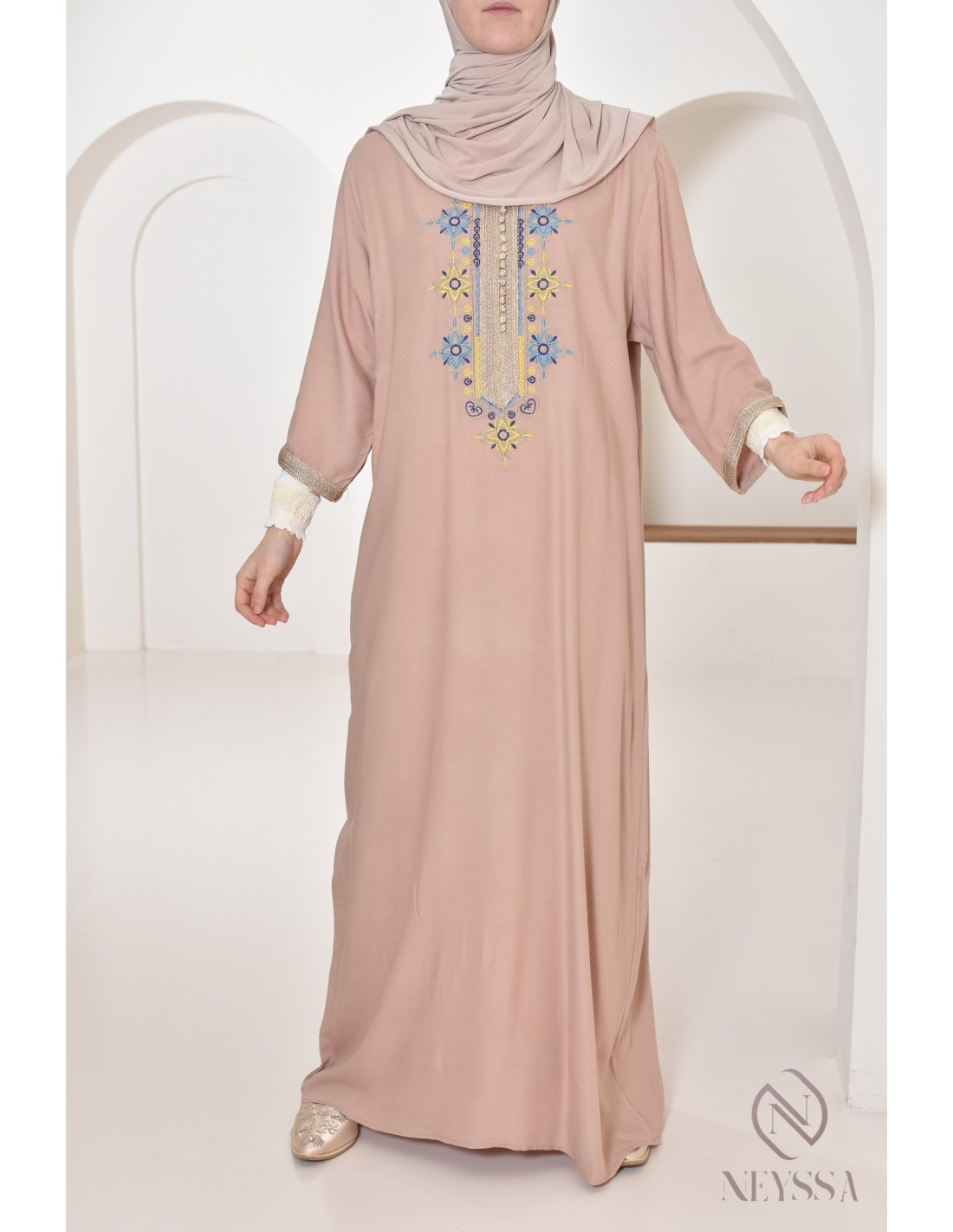 Sie suchen eine marokkanische Abaya, die Sie bequem zu Hause tragen können? Hier ist die hübsche Gandoura, in der Sie sich wohlfühlen werden.