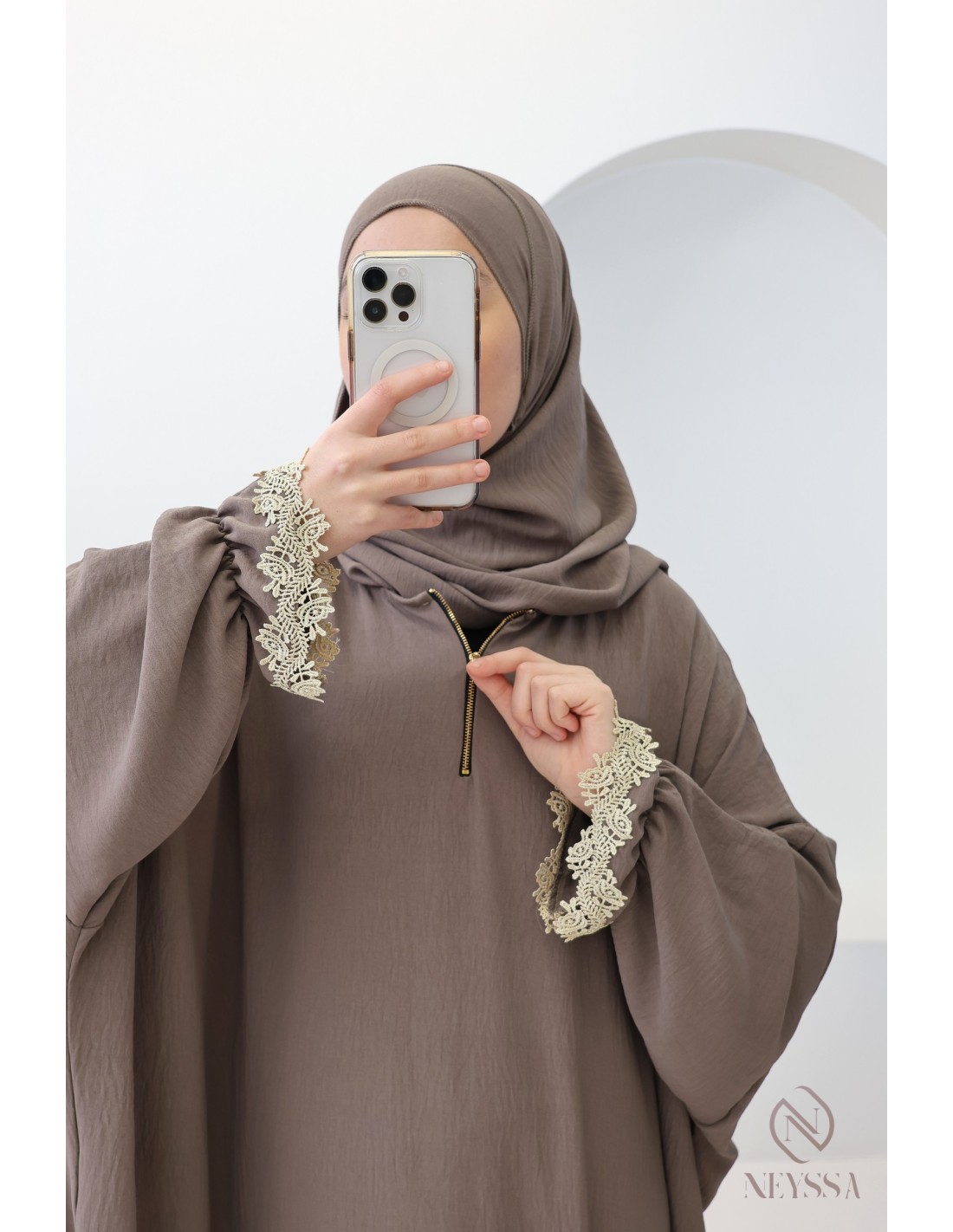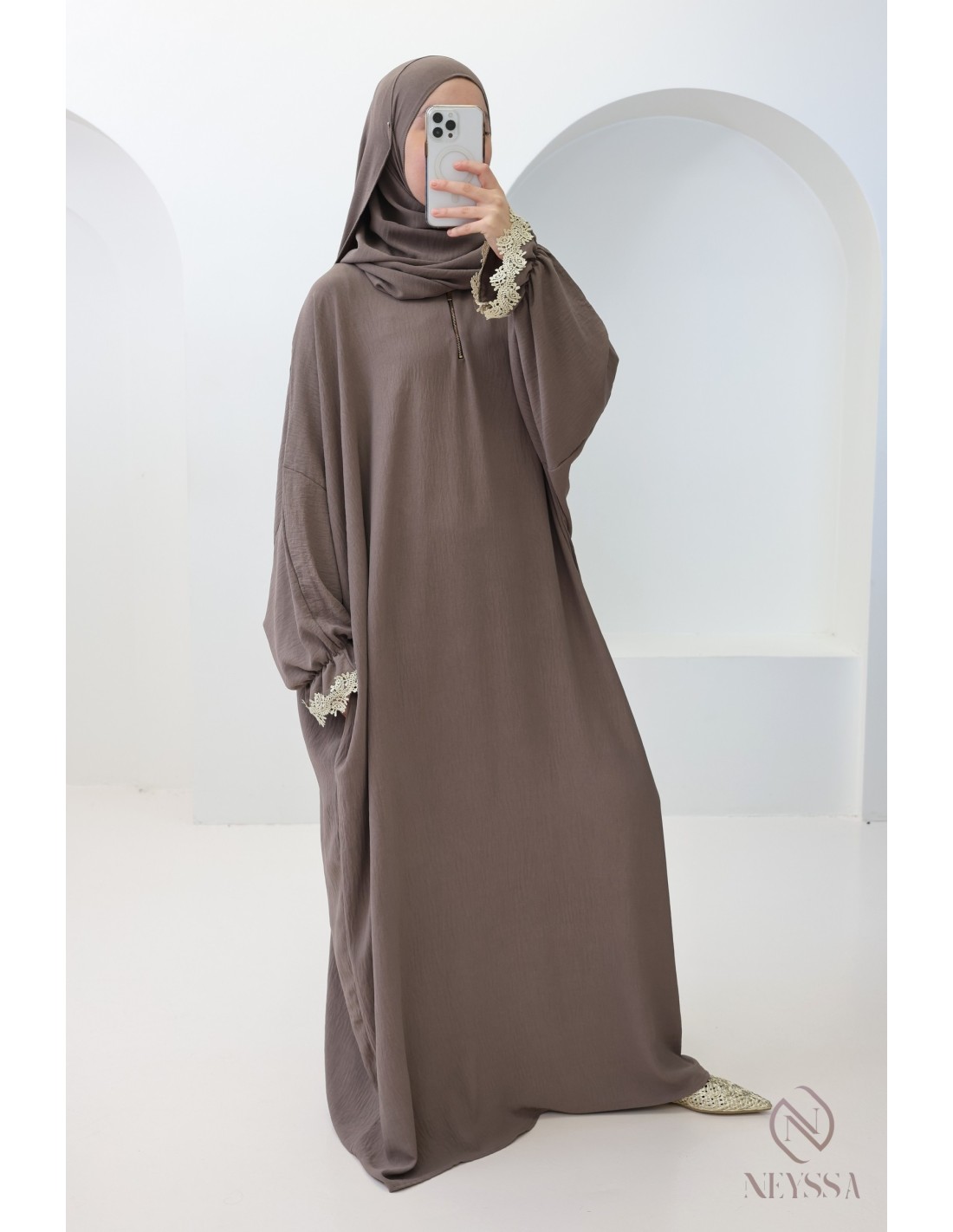 Diese Abaya mit integriertem Hijab ist eine perfekte Geschenkidee für eine Schwester oder zum Beispiel für Ihre Schwiegermutter. Sie ist das ideale Kleidungsstück für den Besuch der Moschee oder um Ihre Familie zu Hause zu empfangen. Diese Abaya mit integriertem Hijab ist originell und kleidsam zugleich und hebt sich von der Masse ab.