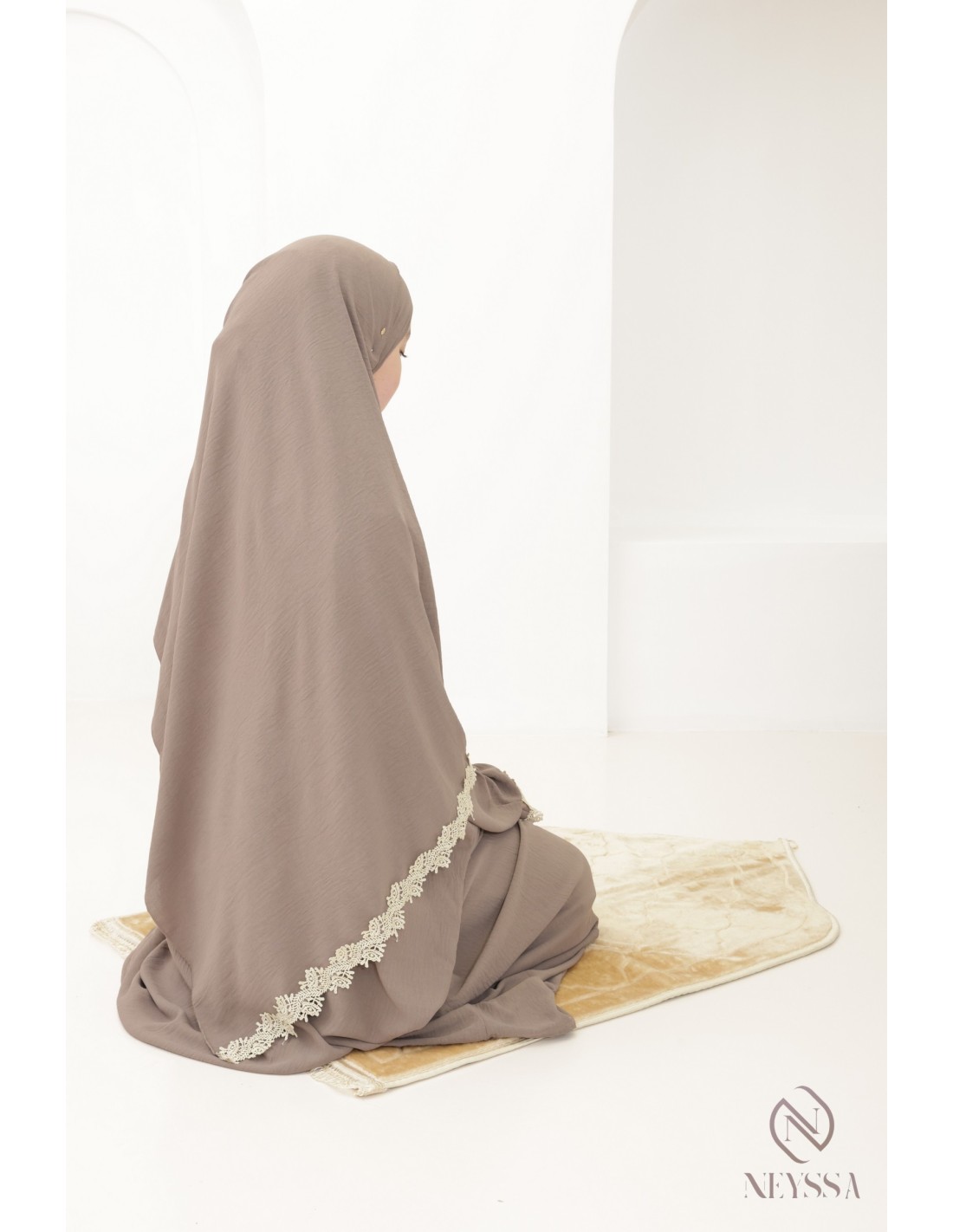 • Kreation Neyssa : Hier ist ein einzigartiges besticktes Gebetskleid, das von Neyssa gefertigt wurde.