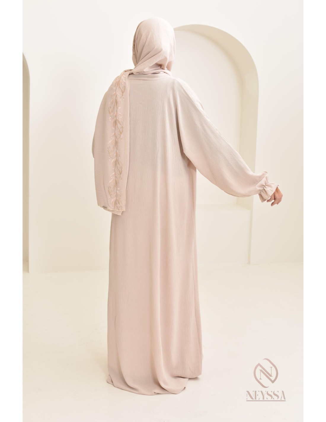 -Herzverbergende Abaya: Das Kleid wird mithilfe eines Gummibands wie ein Kimono angezogen. Die Schnüre werden einfach verknotet, und schon hat man ein wunderschönes Kleidungsstück im Stil eines Herzkragens.