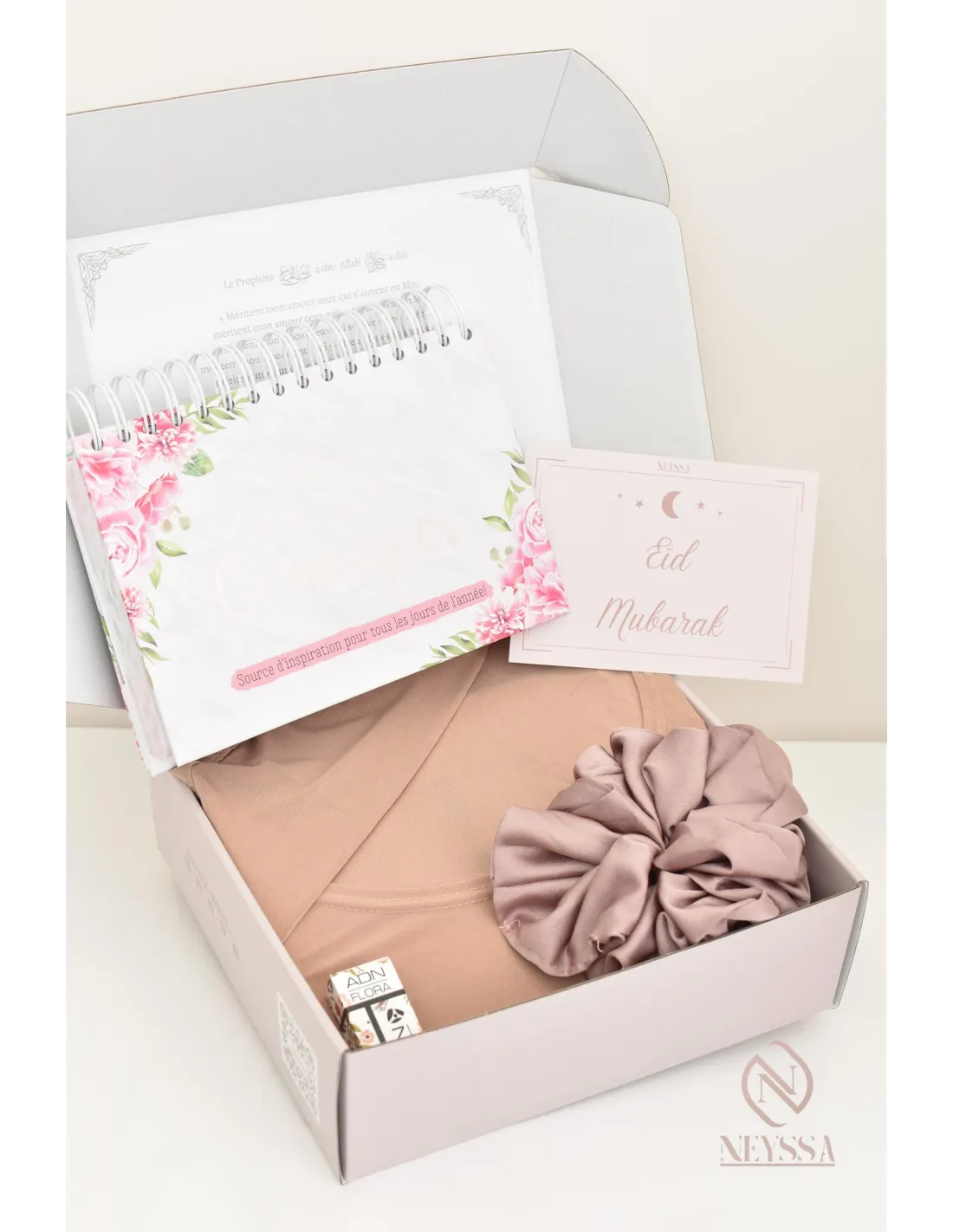 Es ist auch die Geschenkbox für verschleierte Frauen, die Sie einer neuen Konvertitin schenken können, um ihr bei ihren ersten Schritten als neue Muslimin zu helfen.