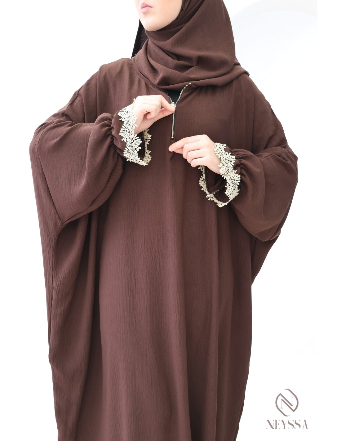 Box Gebetskleid mit Reißverschluss Yaqeen Schokolade