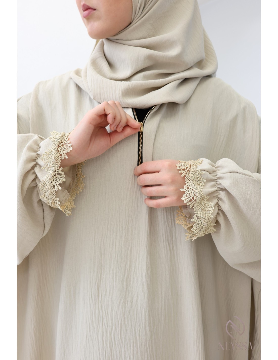 Sie werden sich in die beigefarbene Abaya mit Spitze und integriertem Hijab aus Jazz für verschleierte Frauen verlieben: