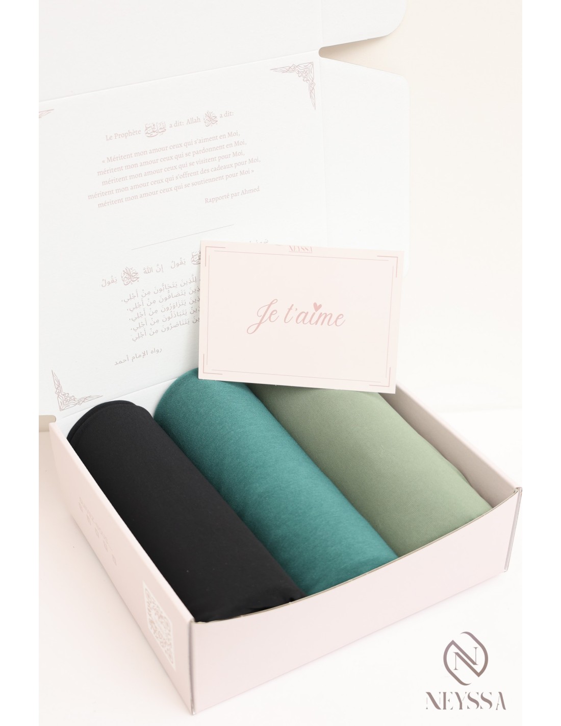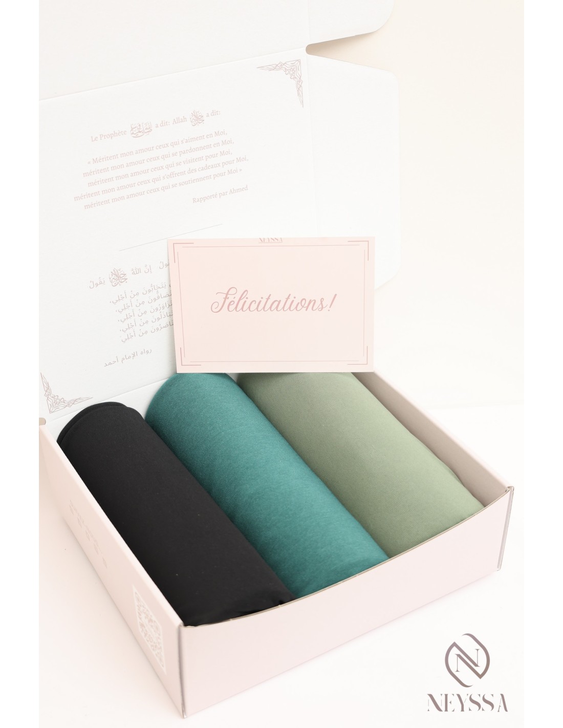 Geschenkbox mit Hijabs aus Premium-Jersey für trendbewusste verschleierte Frauen: die Essentials