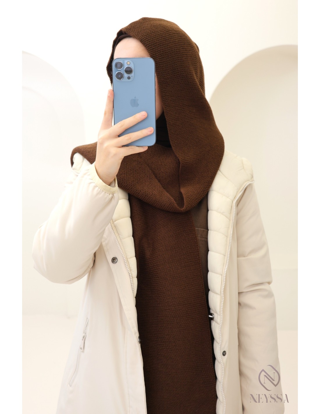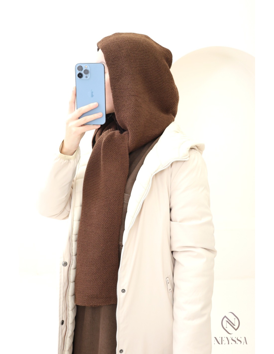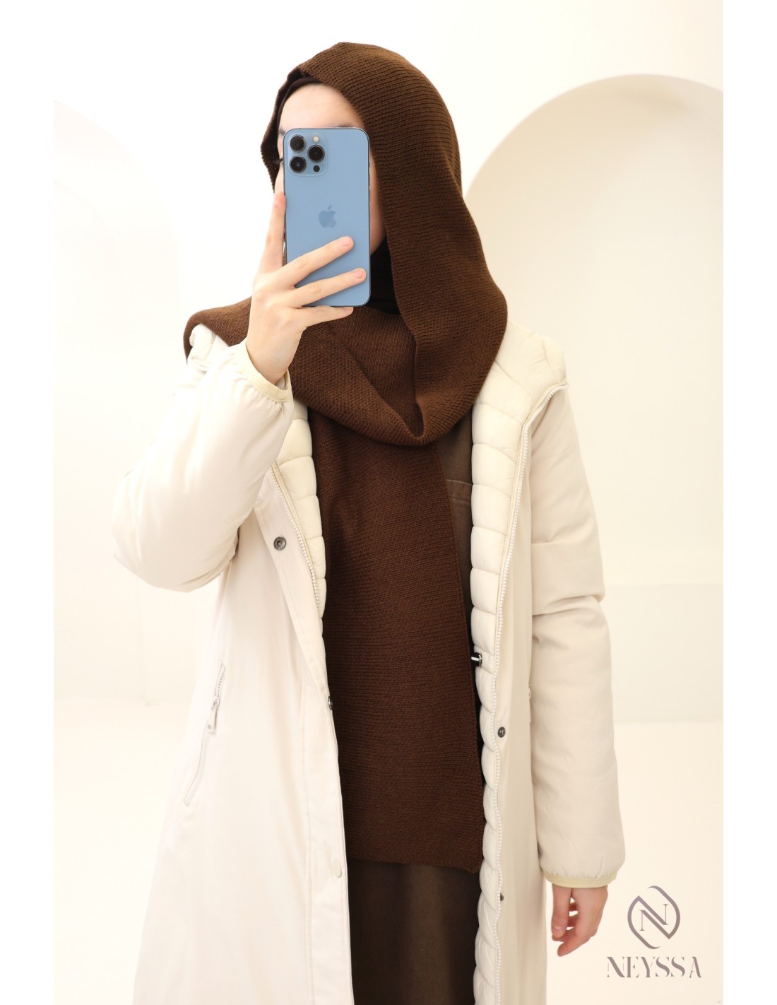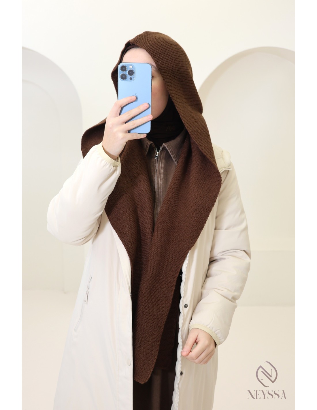 Dieser Kapuzenschal vereint modernen Stil mit absolutem Komfort und ist das ideale Accessoire, um der Kälte stilvoll zu trotzen.