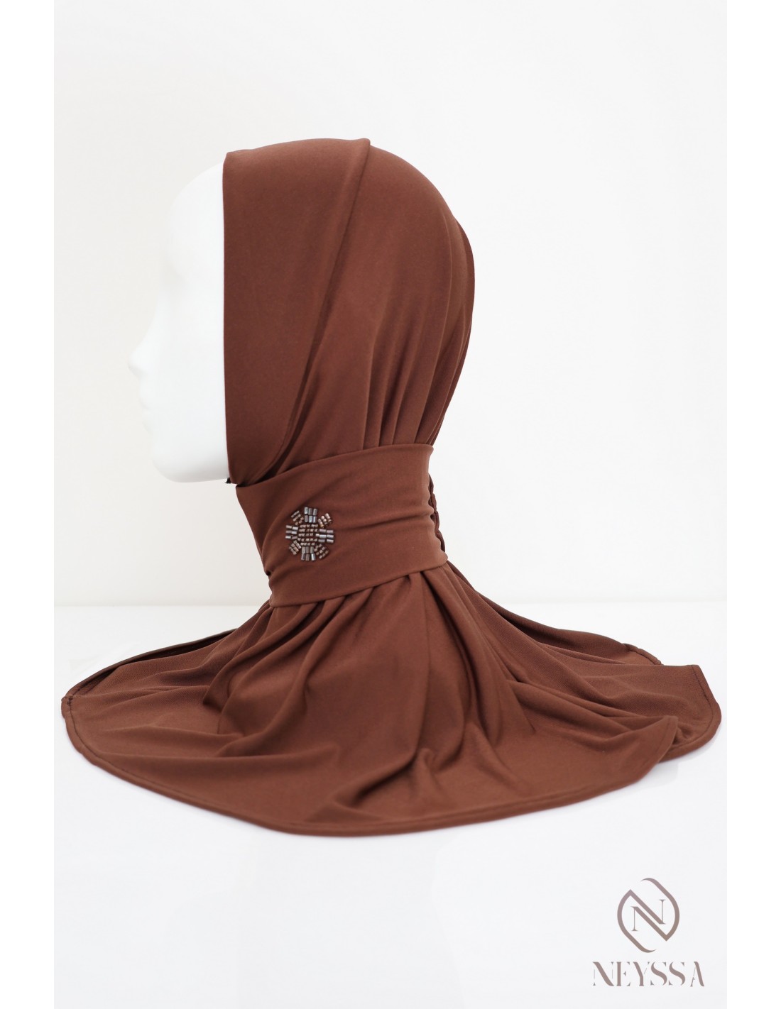 Hijab-Kapuze mit Knöpfen aus Premium-Jersey, mit Perlenmuster