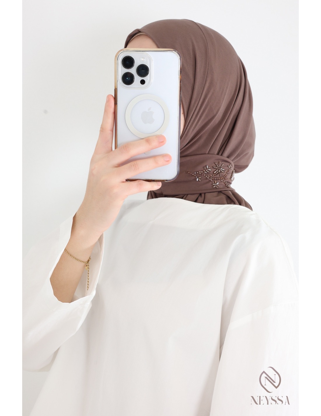 Sie werden sich in die Premium-Jersey-Hijab-Kapuze zum Überziehen mit trendiger Perlenverzierung verlieben: