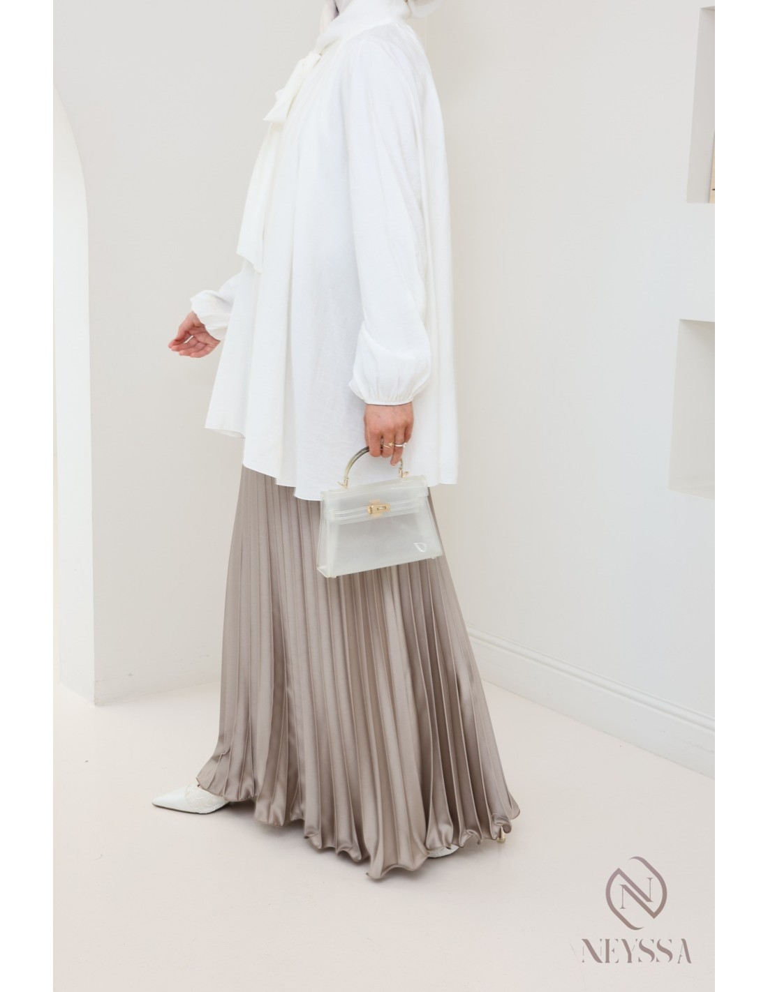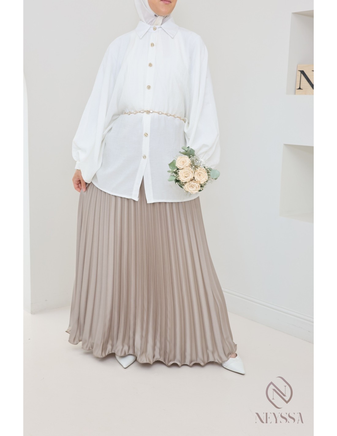 Suchen Sie nach einem langen Satinplisseerock, um Ihre muslimische Damenbekleidung zu vervollständigen?