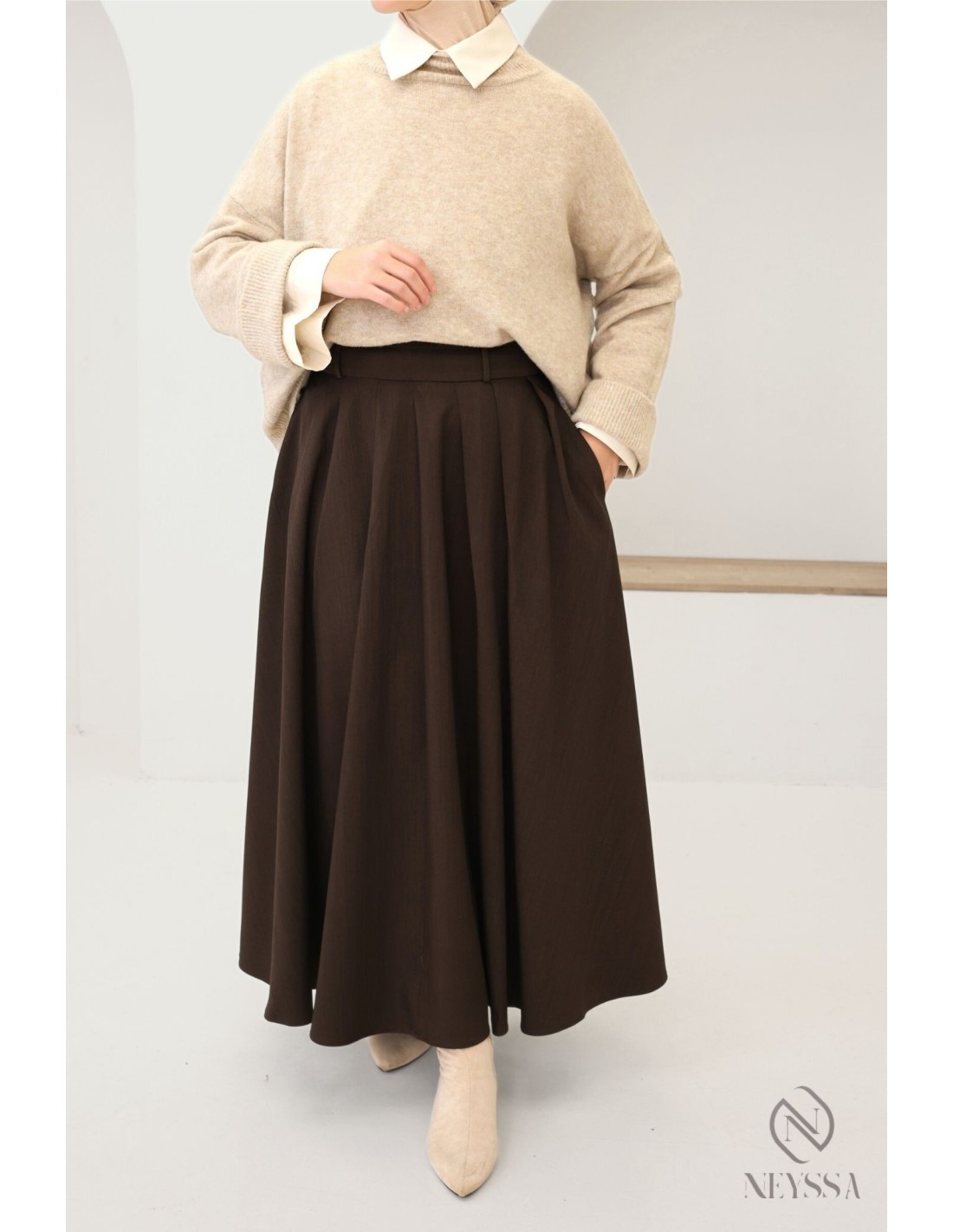 Langer Rock mit Bundfalten und Taschen, ausgestellter Schnitt