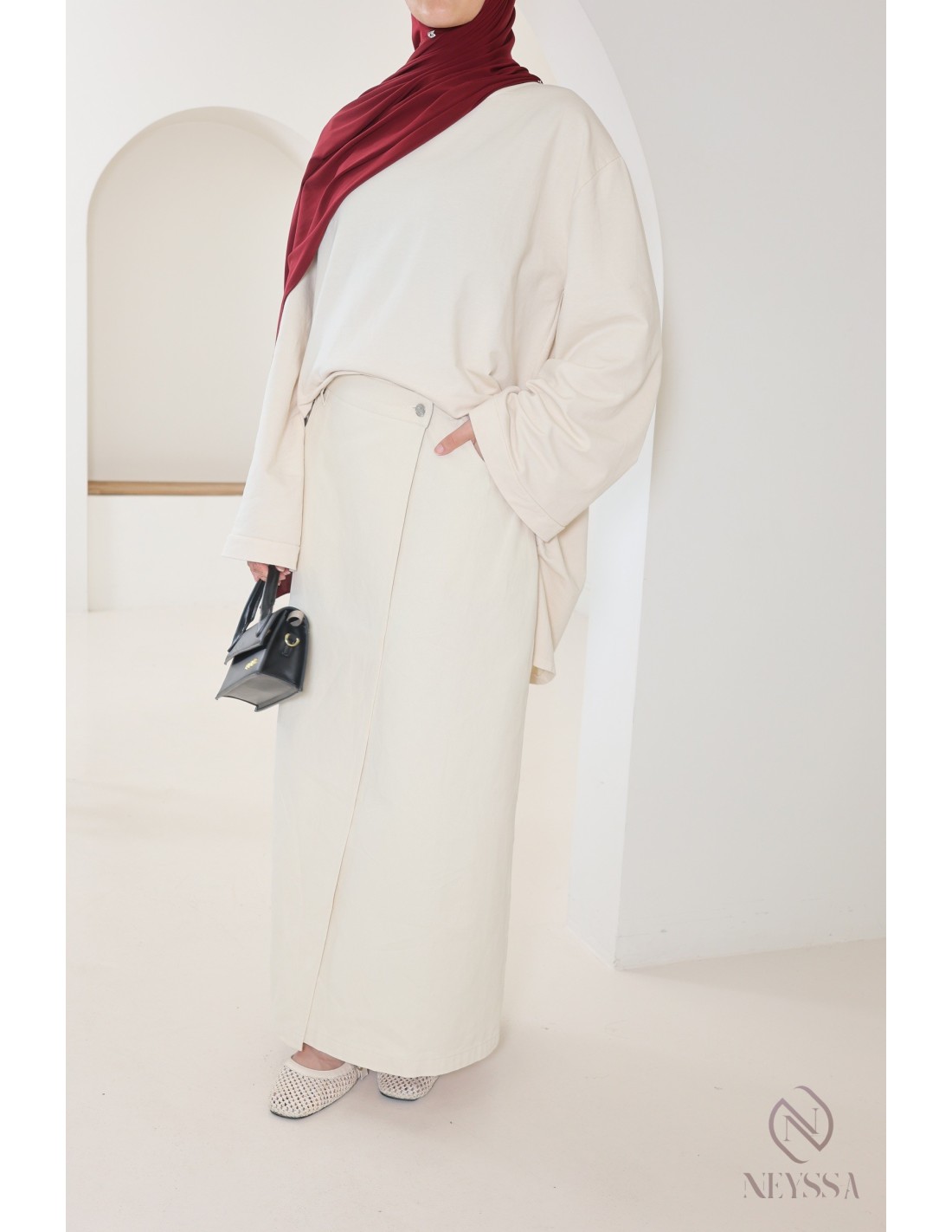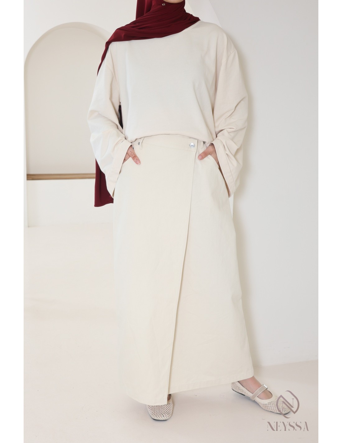 Langer Jeansrock in Creme für Frauen mit Hijab