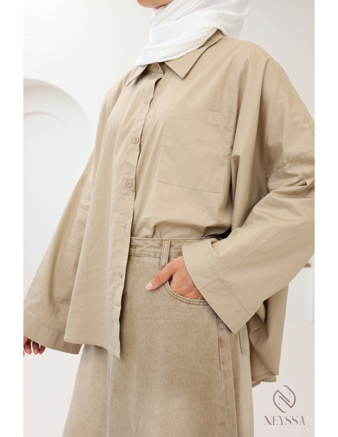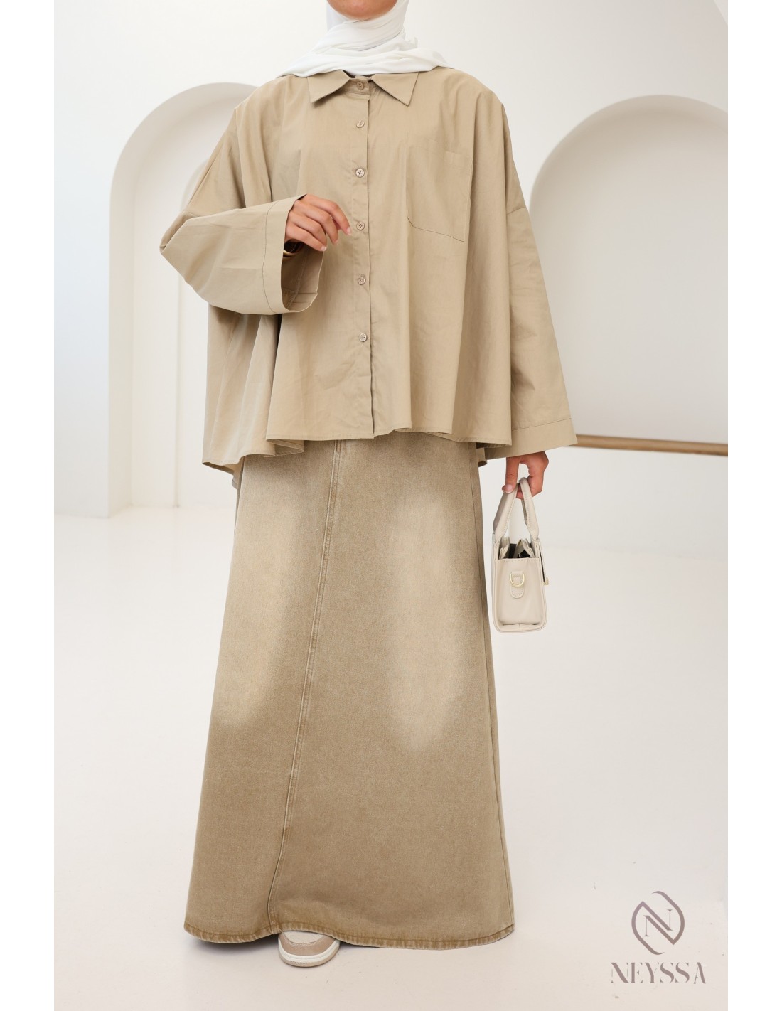 Sie suchen einen Jeansrock, der weder einen Schlitz hat noch eng anliegt, um Ihre Mastoura-Garderobe zu ergänzen?