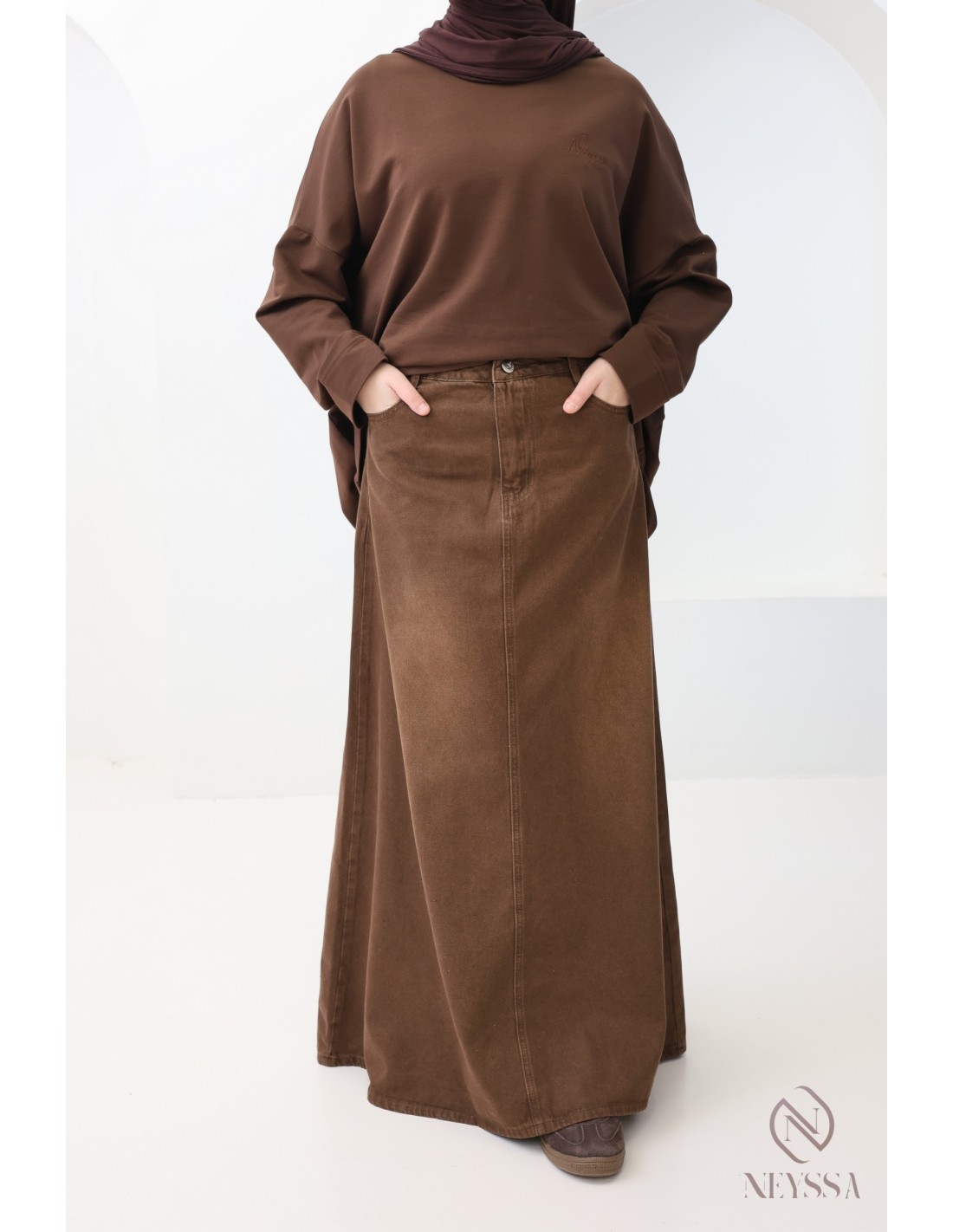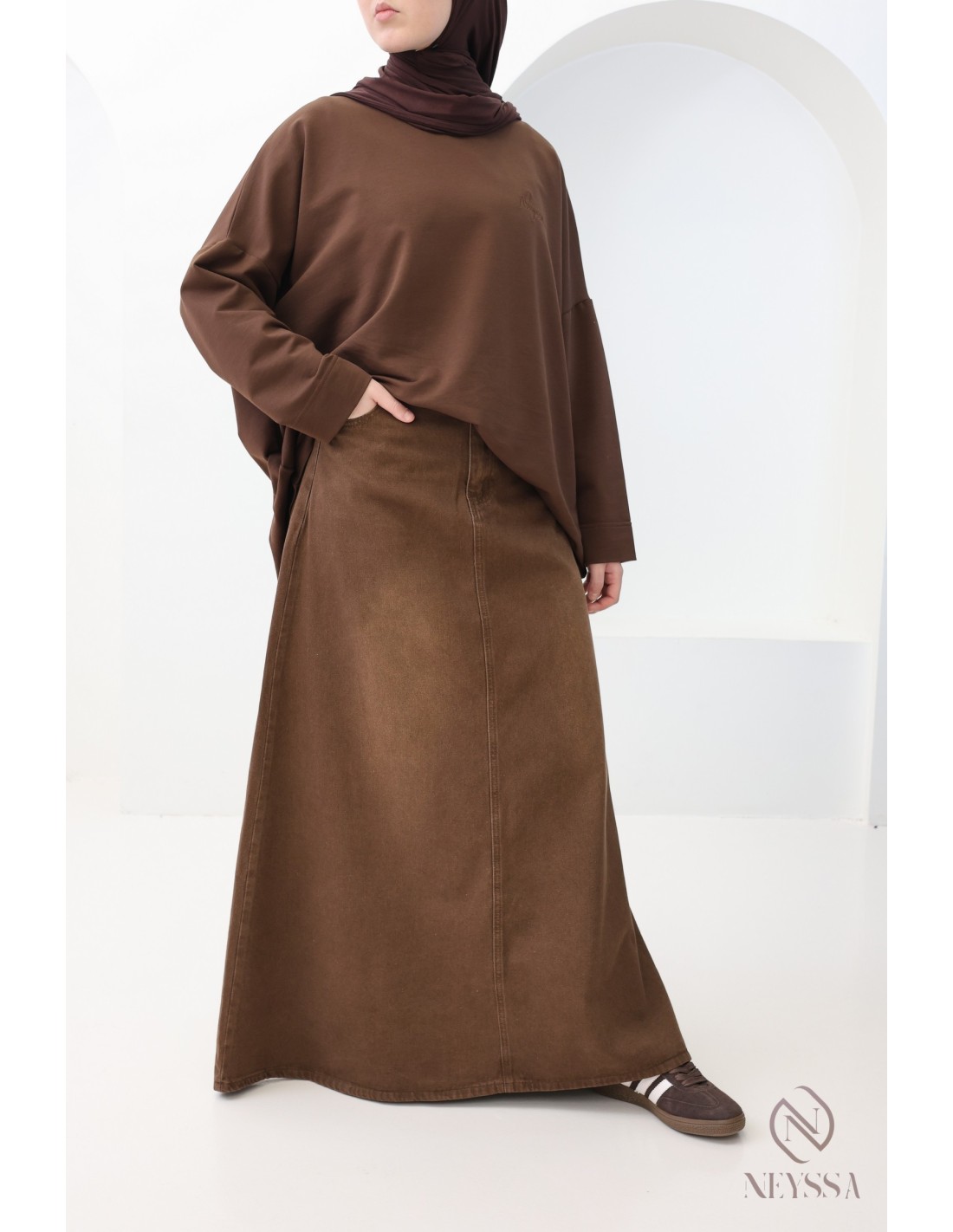 Langer Jeansrock aus weicher Baumwolle in Braun
