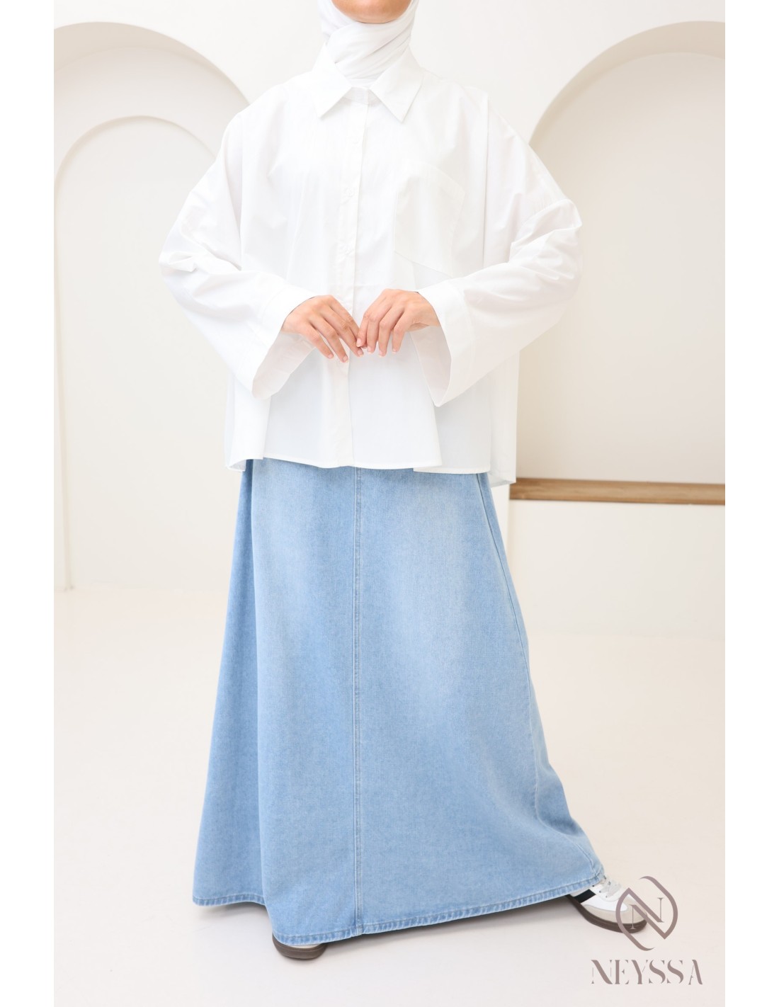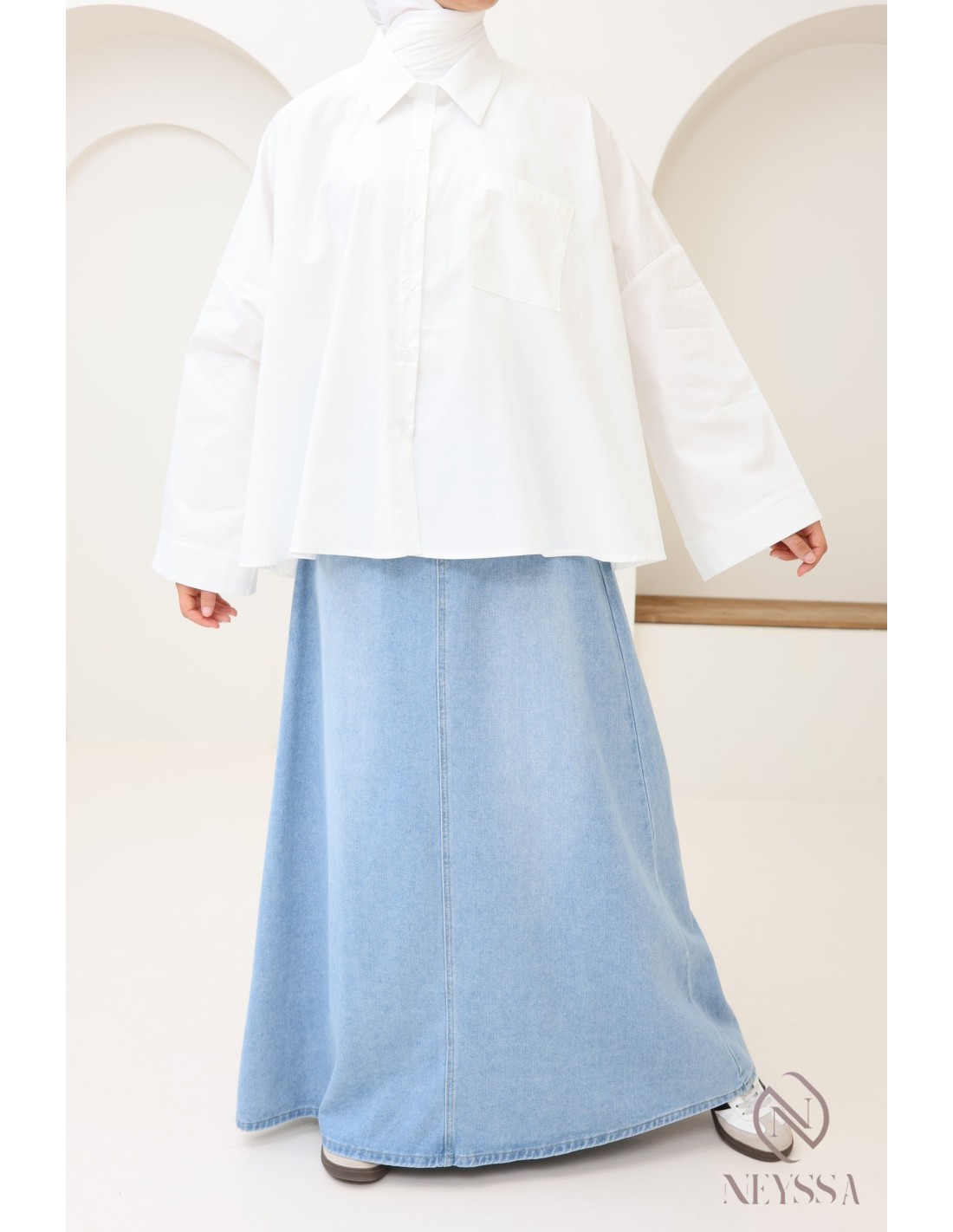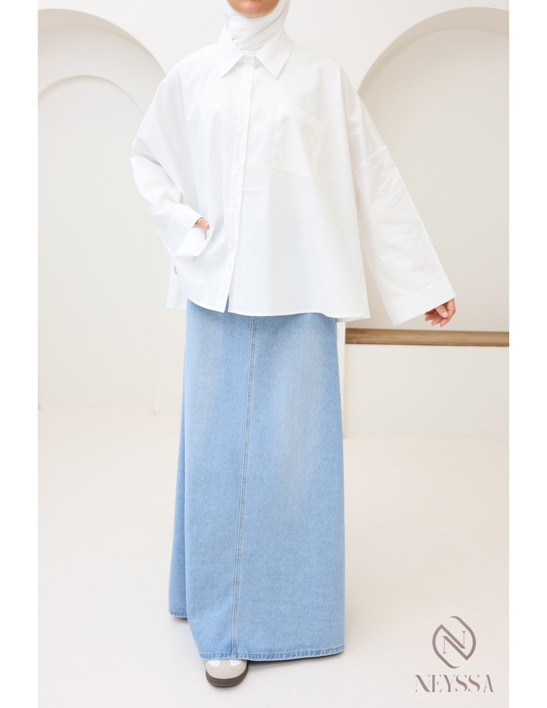 Ihre Garderobe ist voller Sommerröcke , aber Ihnen fehlen hübsche, dezente Oberteile, um Ihre Outfits zu vervollständigen? Bei Neyssa bieten wir Ihnen Outfits für Hijabi-Frauen, in denen Sie nur echte Schätze finden, darunter dieses wunderschöne Oversize-Hemd.
