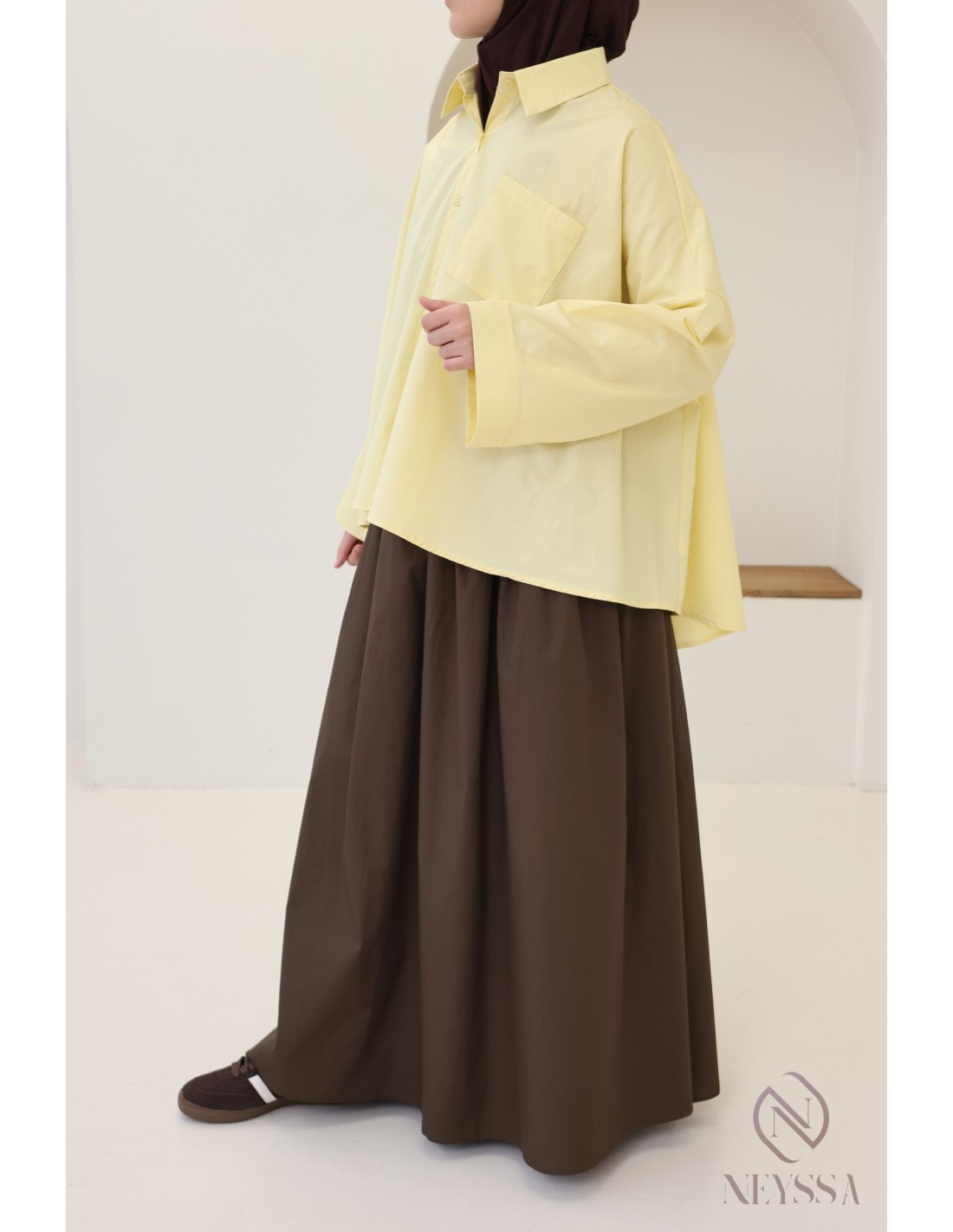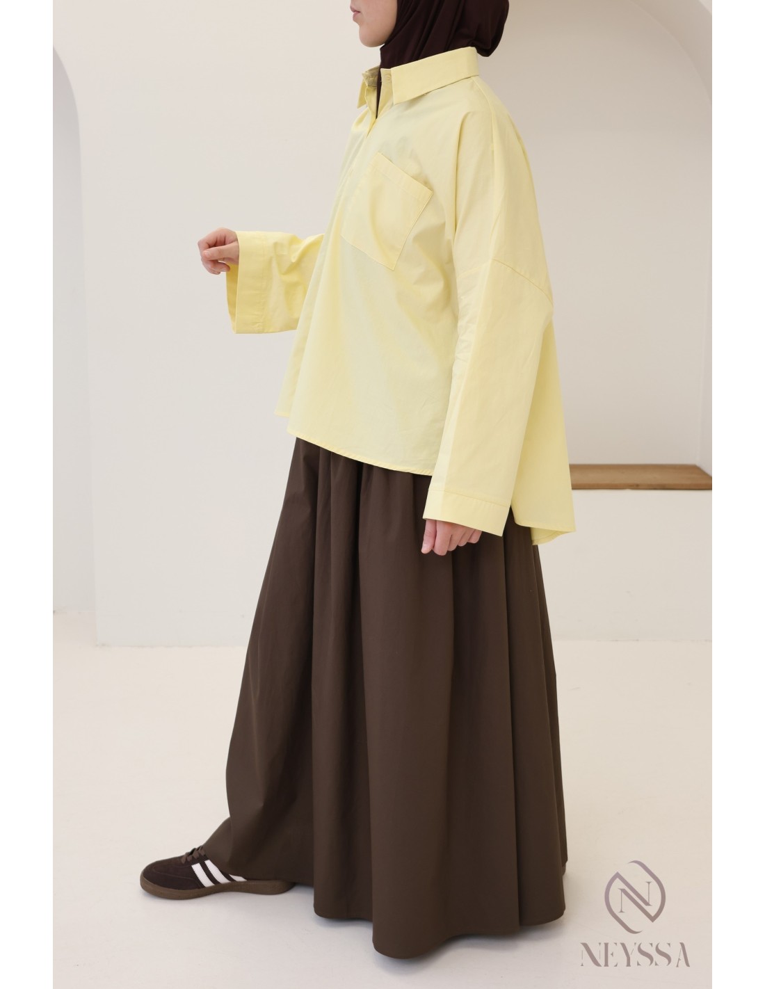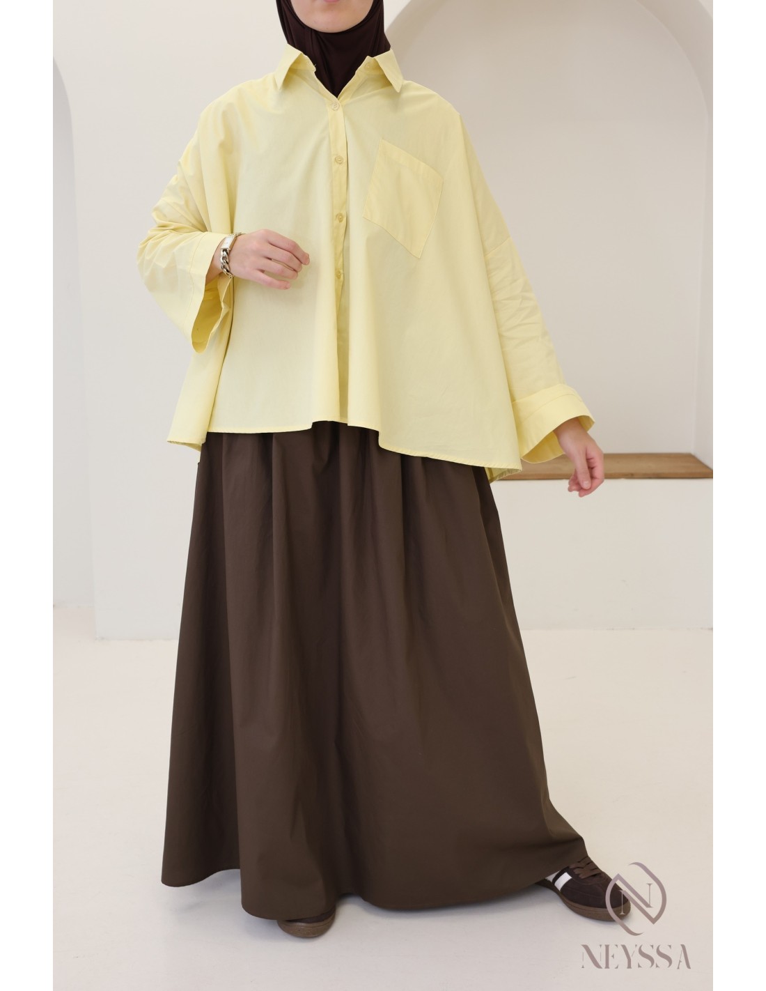 Ihre Garderobe ist voller Sommerröcke , aber Ihnen fehlen hübsche, dezente Oberteile, um Ihre Outfits zu vervollständigen? Bei Neyssa bieten wir Ihnen Outfits für Hijabi-Frauen, in denen Sie nur echte Schätze finden, darunter dieses wunderschöne Oversize-Hemd.