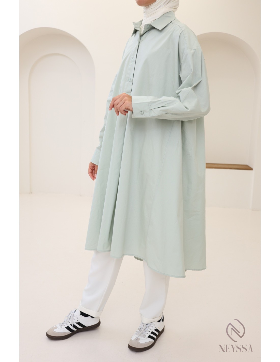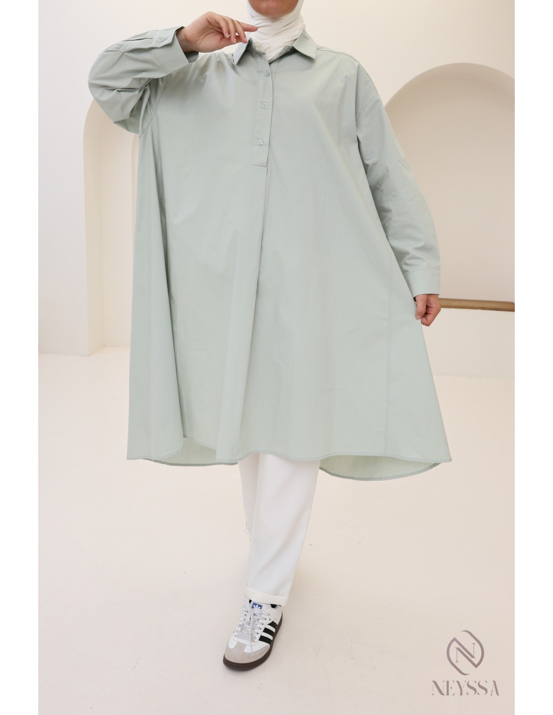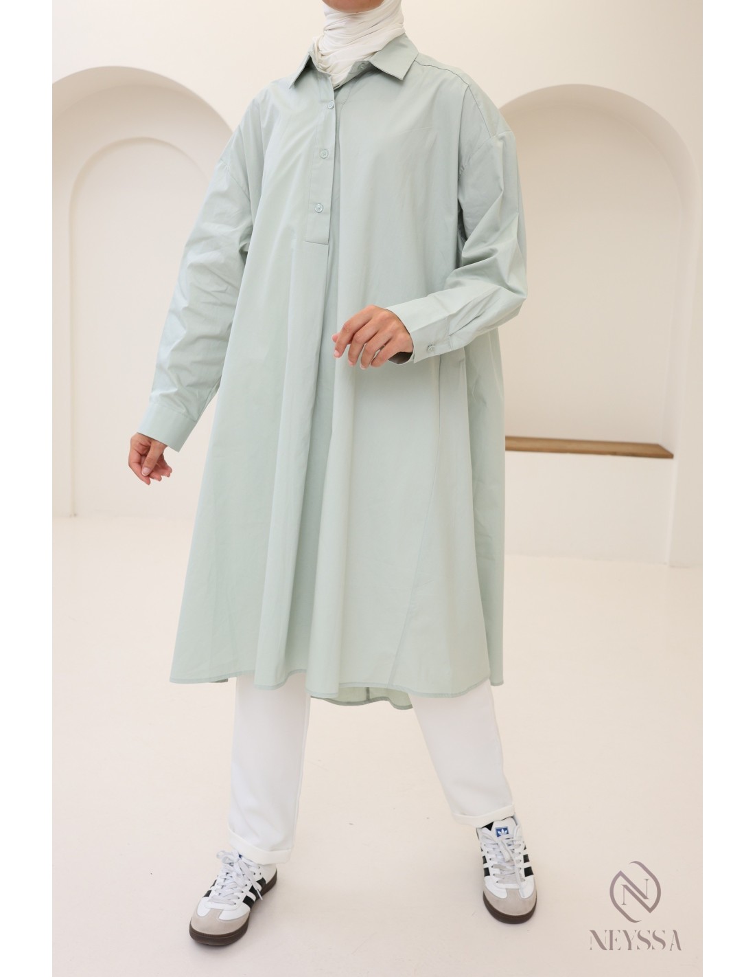 Entdecken Sie alle unsere trendigen langen Tuniken für Hijabi-Frauen bei Neyssa!
