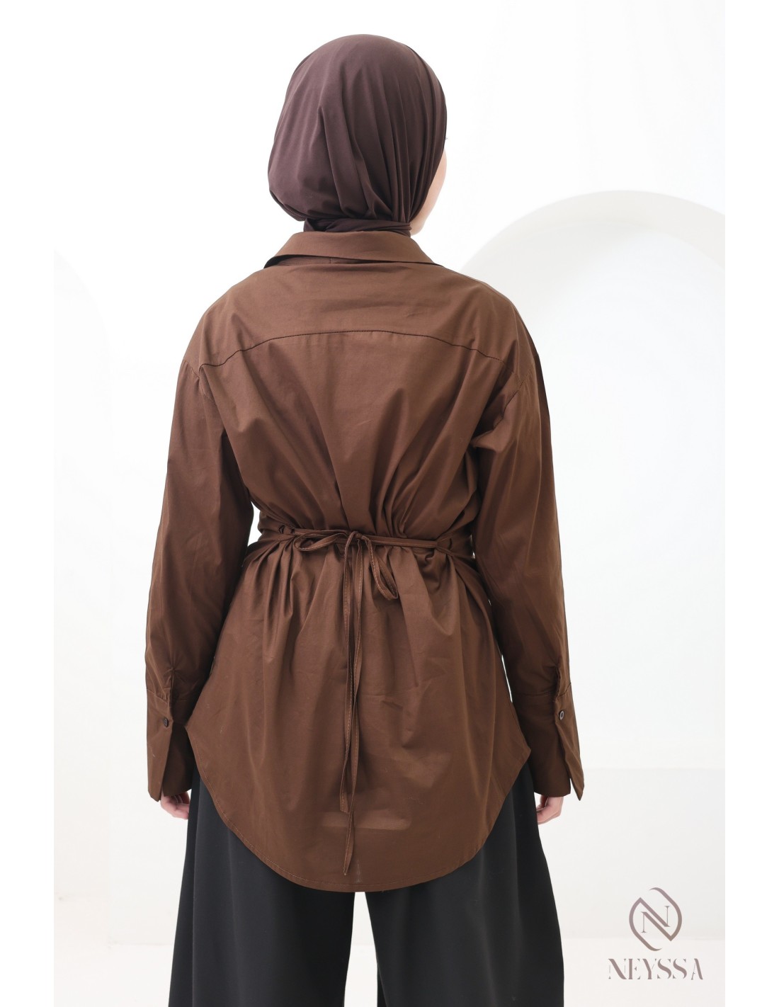 Elegantes Hemd mit Taillenkordel, Baumwollstoff