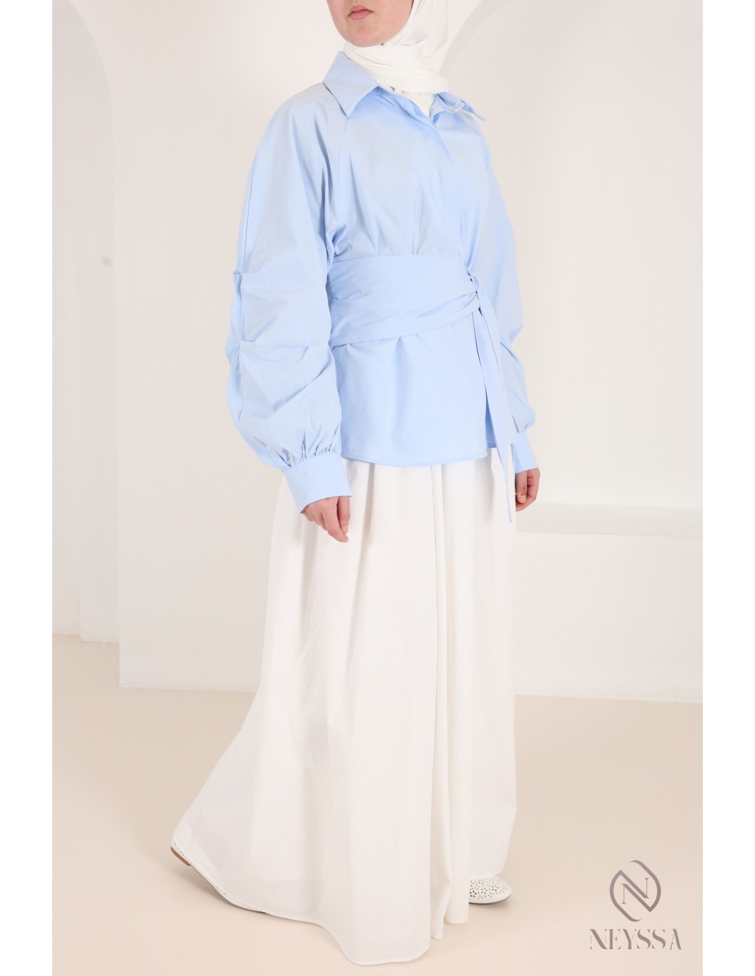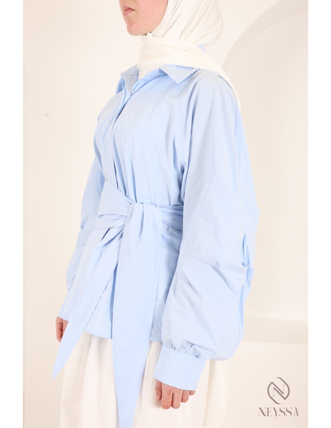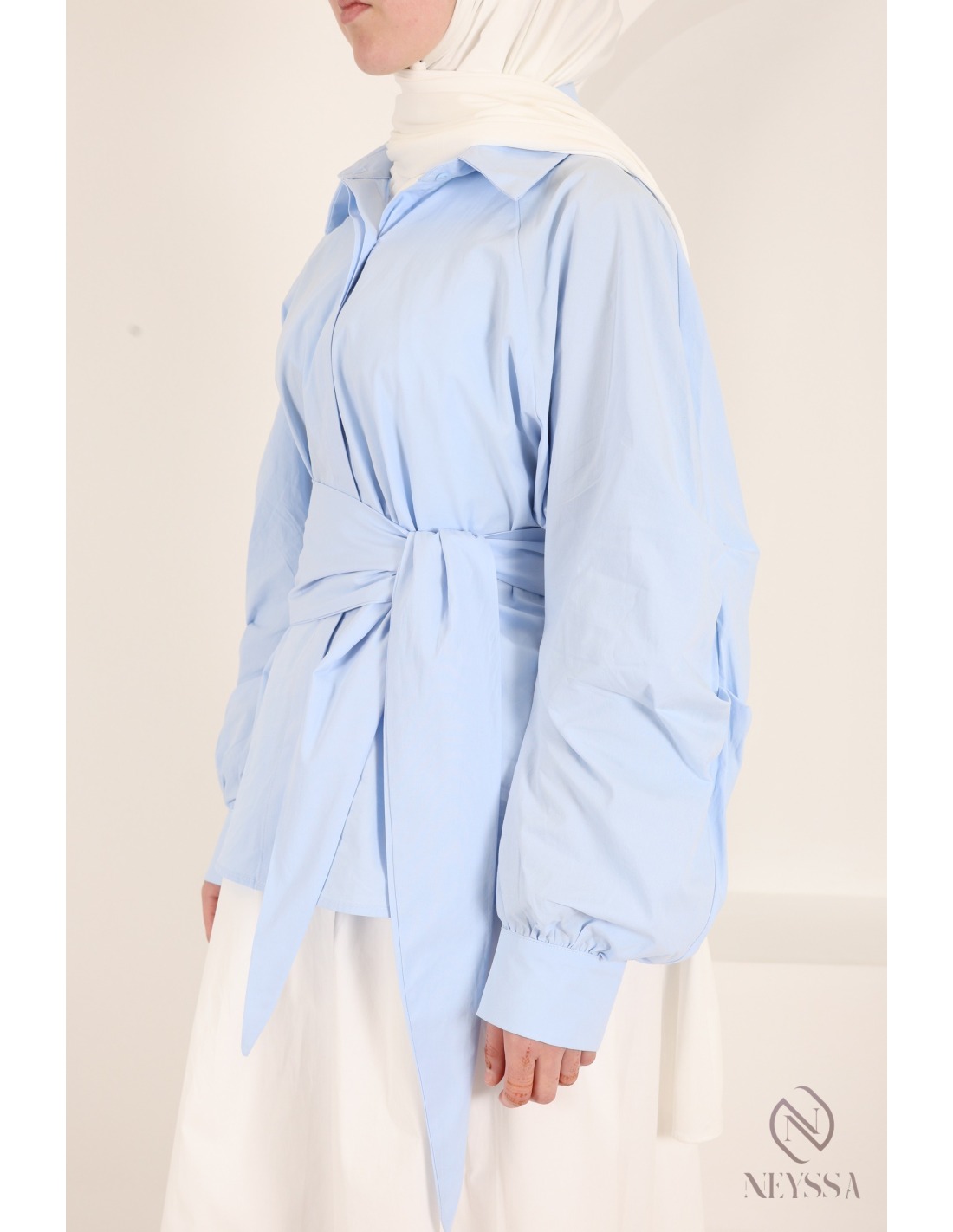 Hemd mit Barrel-Ärmeln aus 100 % Baumwolle und Bindeband an der Taille
