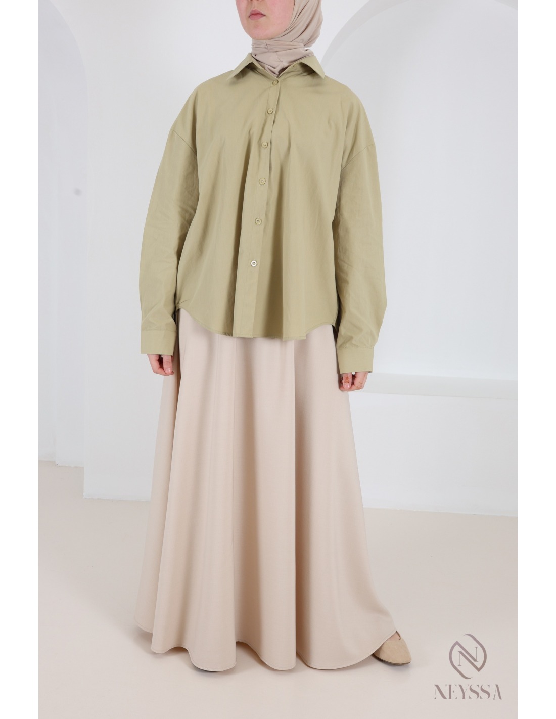 Entdecken Sie unsere langen Röcke für muslimische Frauen, die perfekt zu diesem Hemdstil passen!