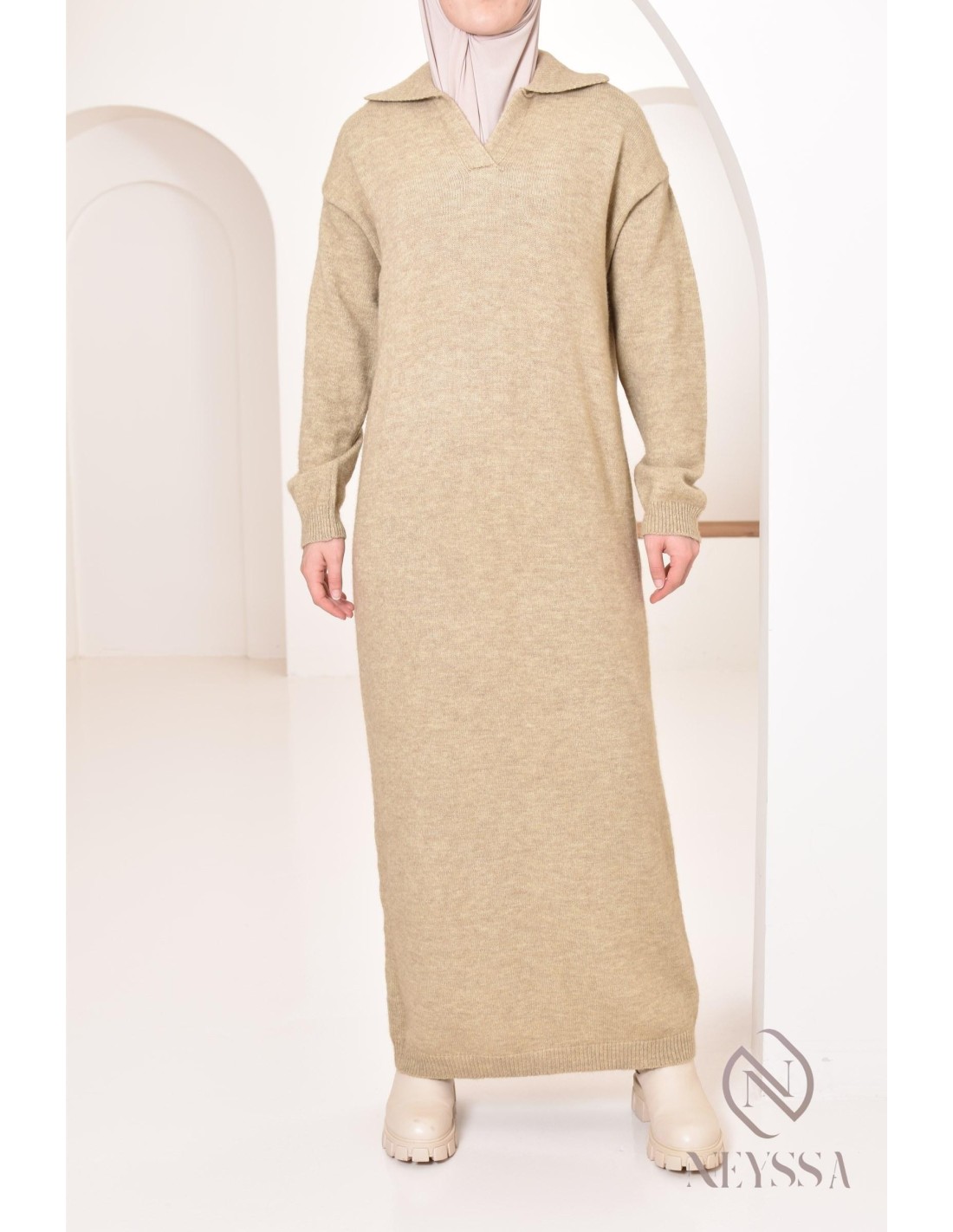 Erneuern Sie Ihre Garderobe für den Herbst/Winter verschleierte Frauen mit diesem langen Kleid aus Feinstrick. Bei Neyssa bieten wir Ihnen eine Auswahl an Kleidungsstücken, die Stil und Bescheidenheit vereinen und ideal für eine elegante kalte Jahreszeit sind.