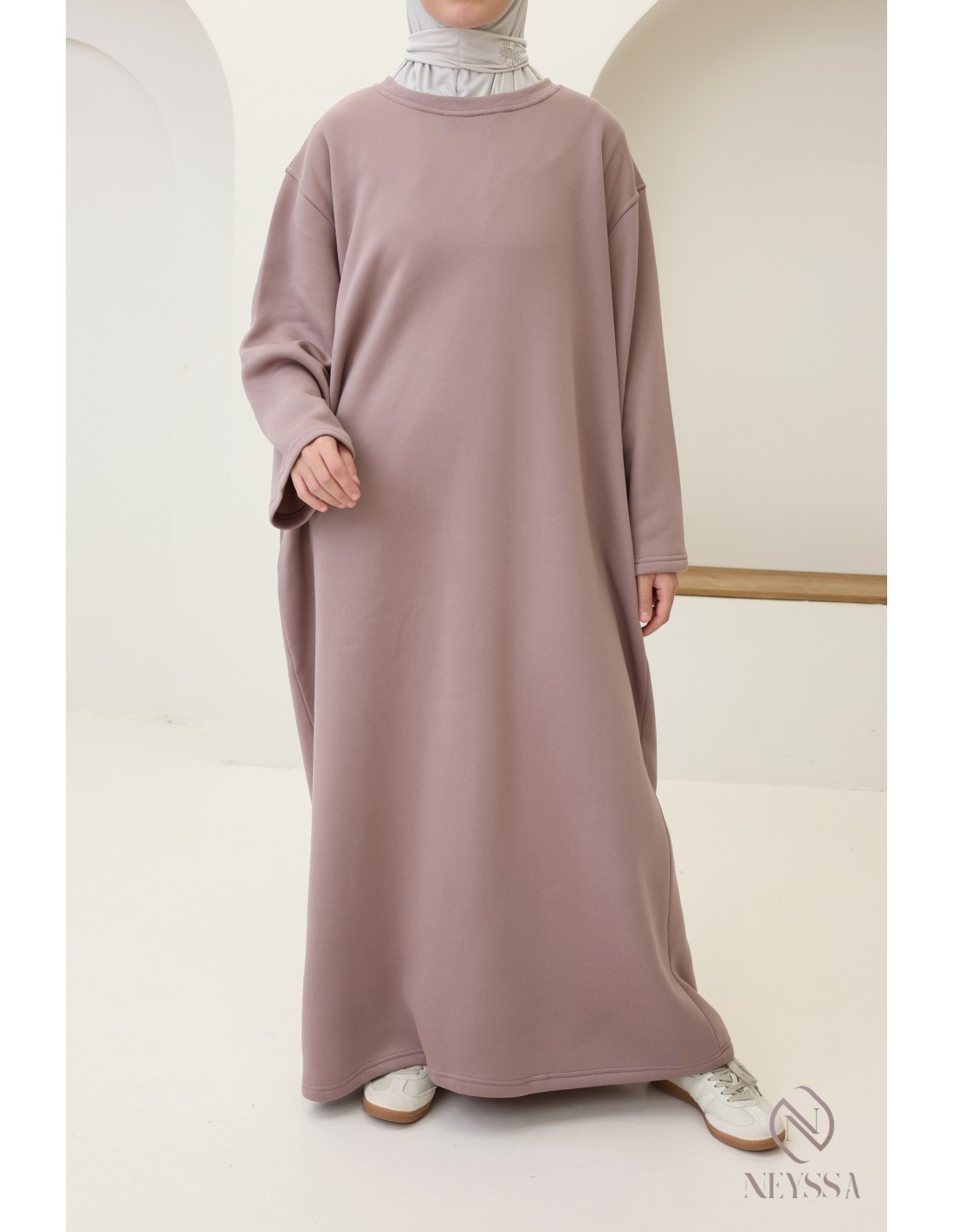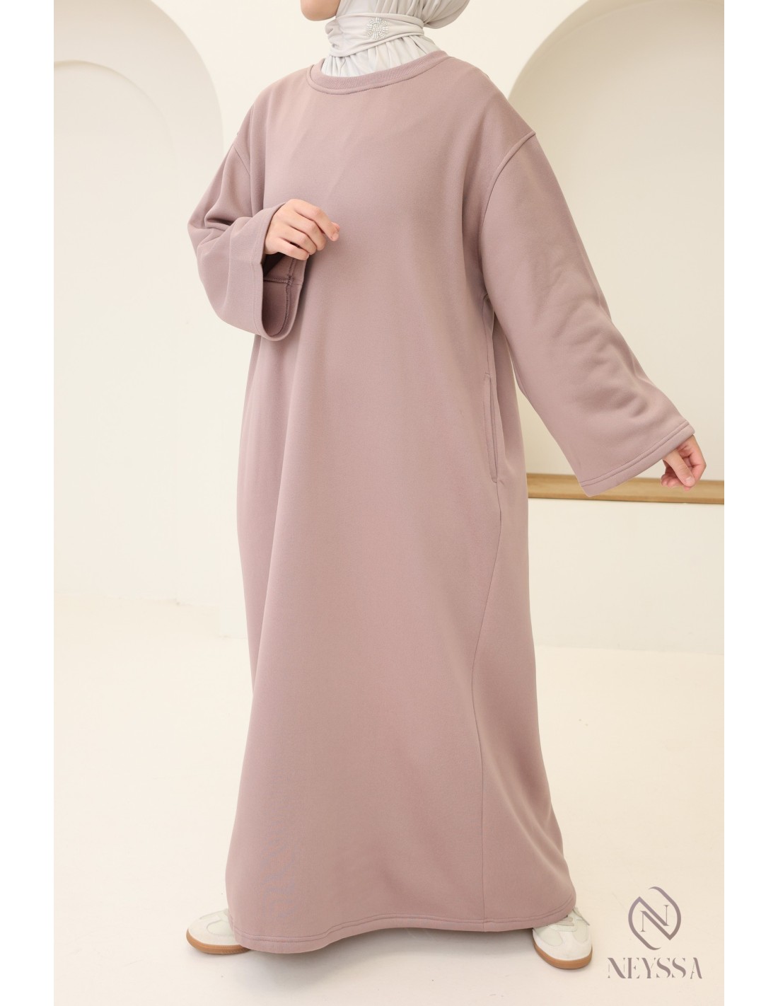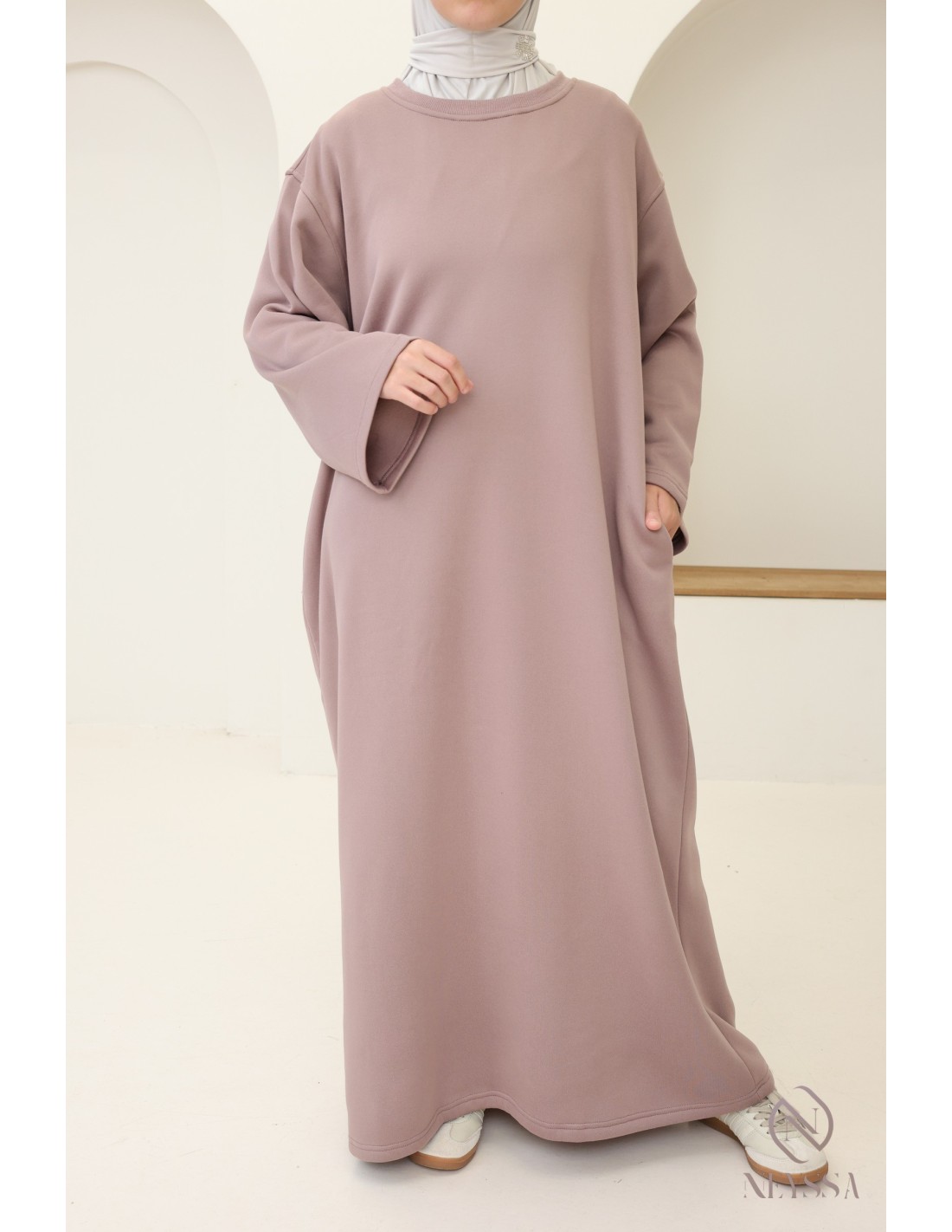 Hier ist ein wunderschönes langes Sweatshirtkleid, das sowohl modern als auch bequem ist. Es ist das unverzichtbare Kleidungsstück für kühle Tage. Dieses Kleid wurde entwickelt, um den Bedürfnissen nach Wärme, Stil und Bescheidenheit gerecht zu werden, und ist ideal für moderne verschleierte Frauen.