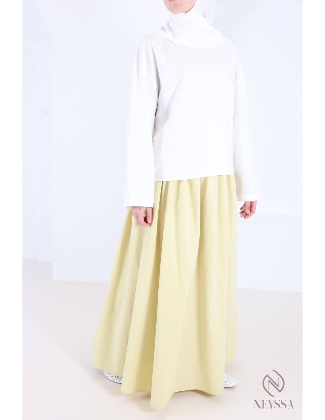 Sind Sie auf der Suche nach einem langen, ausgestellten Rock, der leicht und bequem ist und Ihre Mastoura-Garderobe perfekt ergänzt?