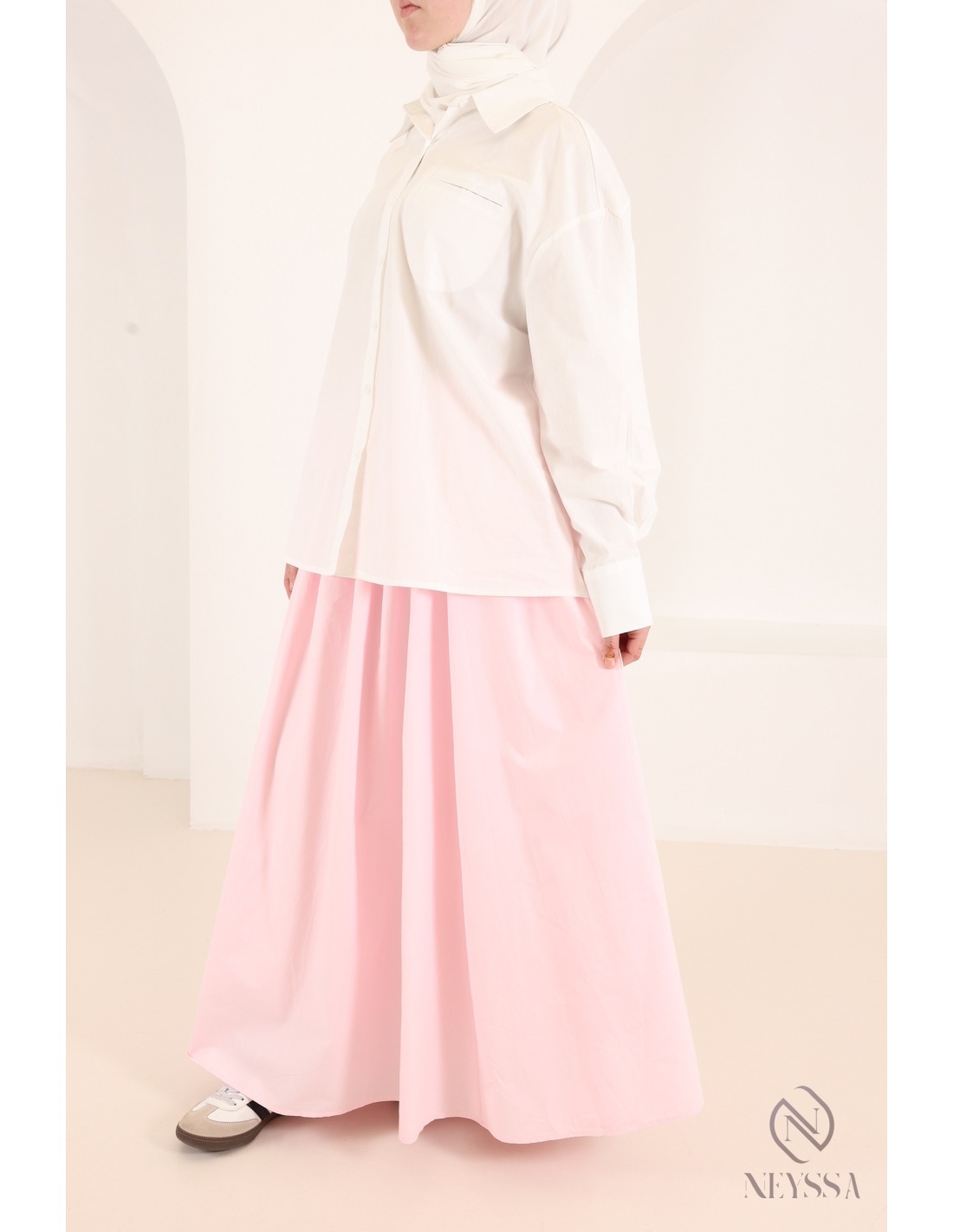 Sind Sie auf der Suche nach einem langen, ausgestellten Rock, der leicht und bequem ist und Ihre Mastoura-Garderobe perfekt ergänzt?