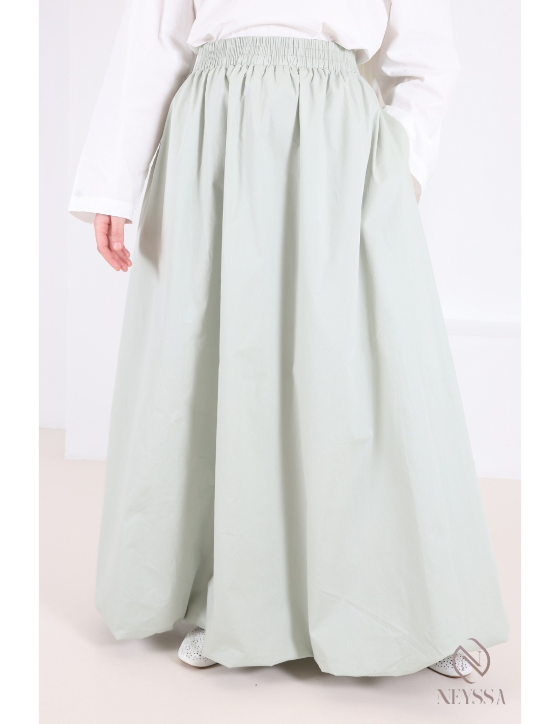 Langer, aquagrüner Ballonrock aus Baumwolle mit Futter und trendigen Taschen