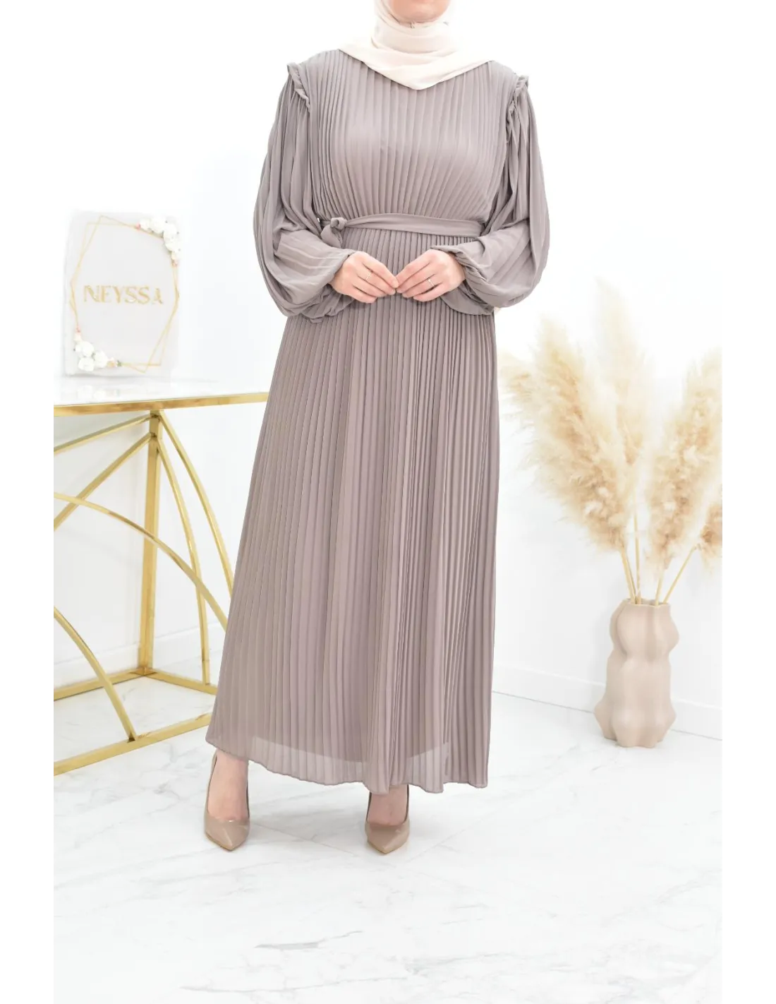 Langes Faltenkleid für bescheidene Frauen.
