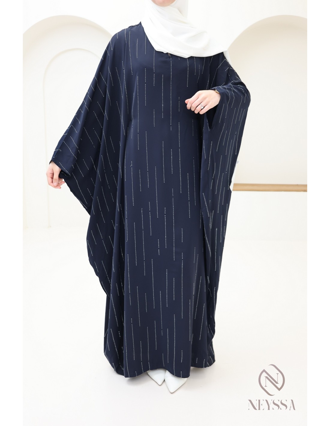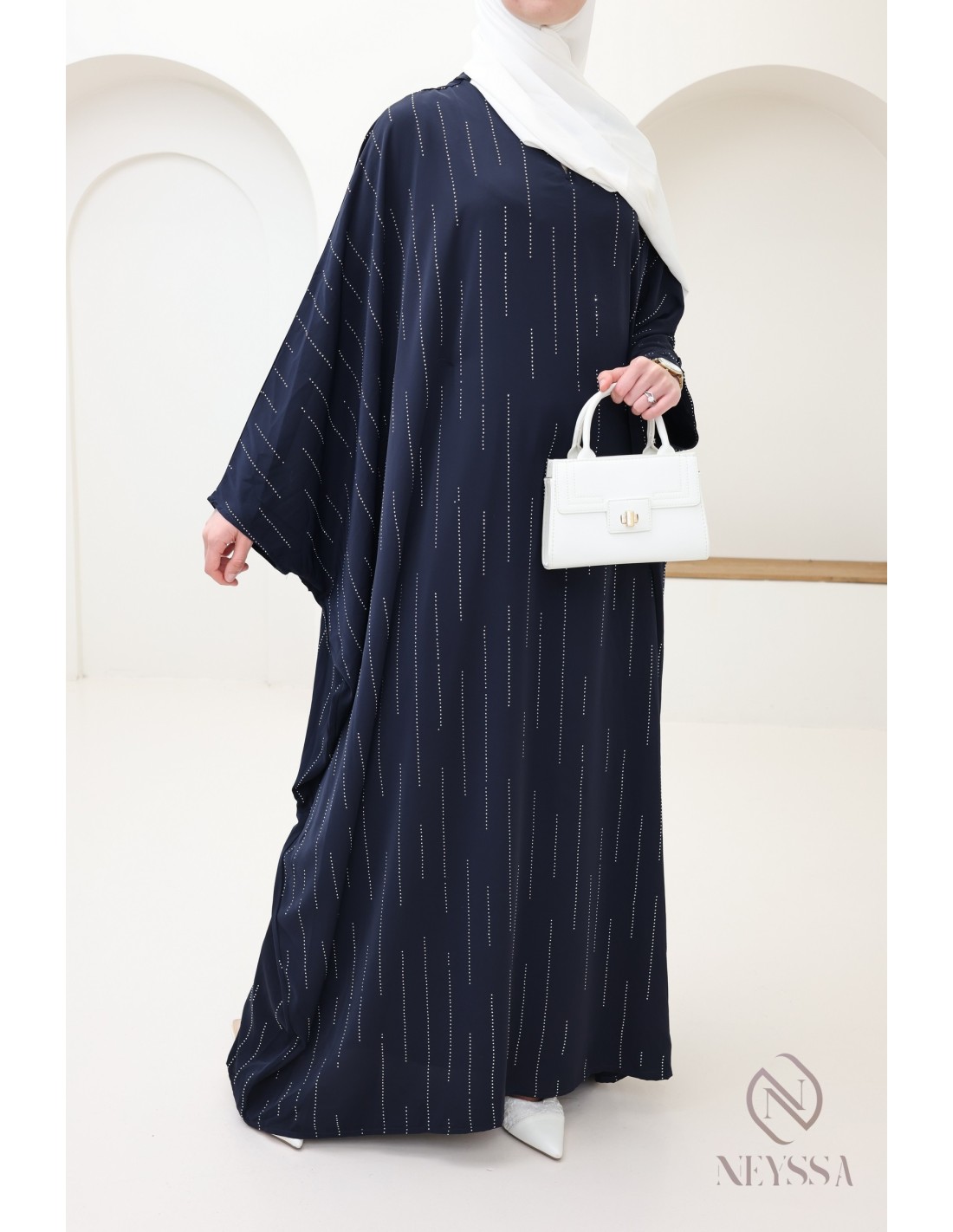 Hier ist diese erhabene Schmetterlingsabaya für Frauen mit einem bescheidenen Schnitt. Wir lieben ihre Schlichtheit und ihre Raffinesse mit den Strassdetails.