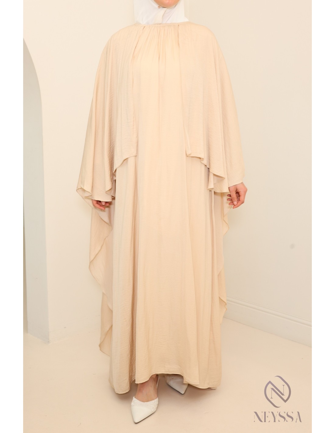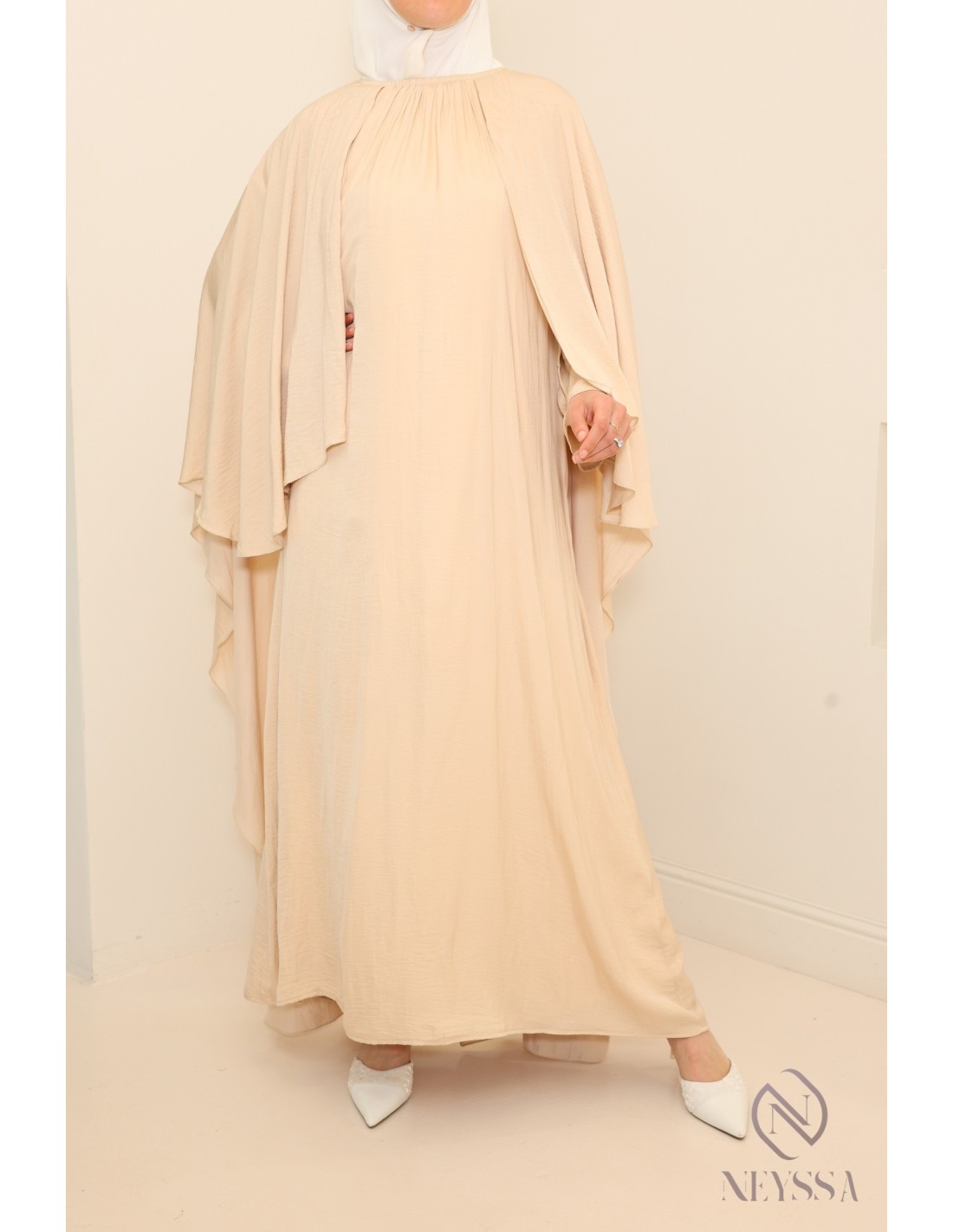 Weite Abaya mit langen Ärmeln und angenähtem Umhang: