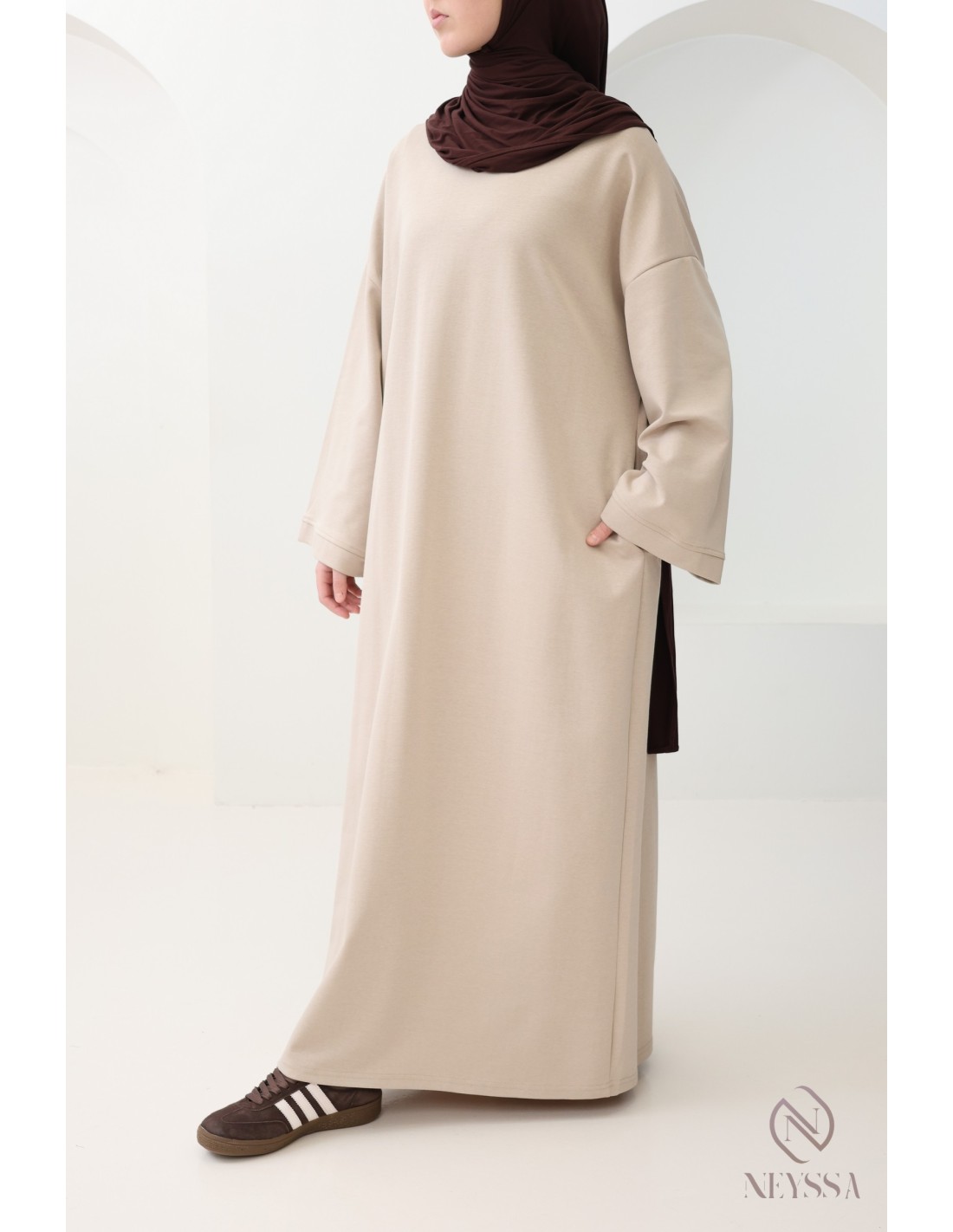 Hier ist ein wunderschönes langes Kleid für die Saison, das sowohl modern als auch bequem ist. Es ist das unverzichtbare Kleidungsstück für kühle Tage. Dieses Kleid wurde entwickelt, um den Bedürfnissen nach Wärme, Stil und Bescheidenheit gerecht zu werden, und ist ideal für moderne verschleierte Frauen.