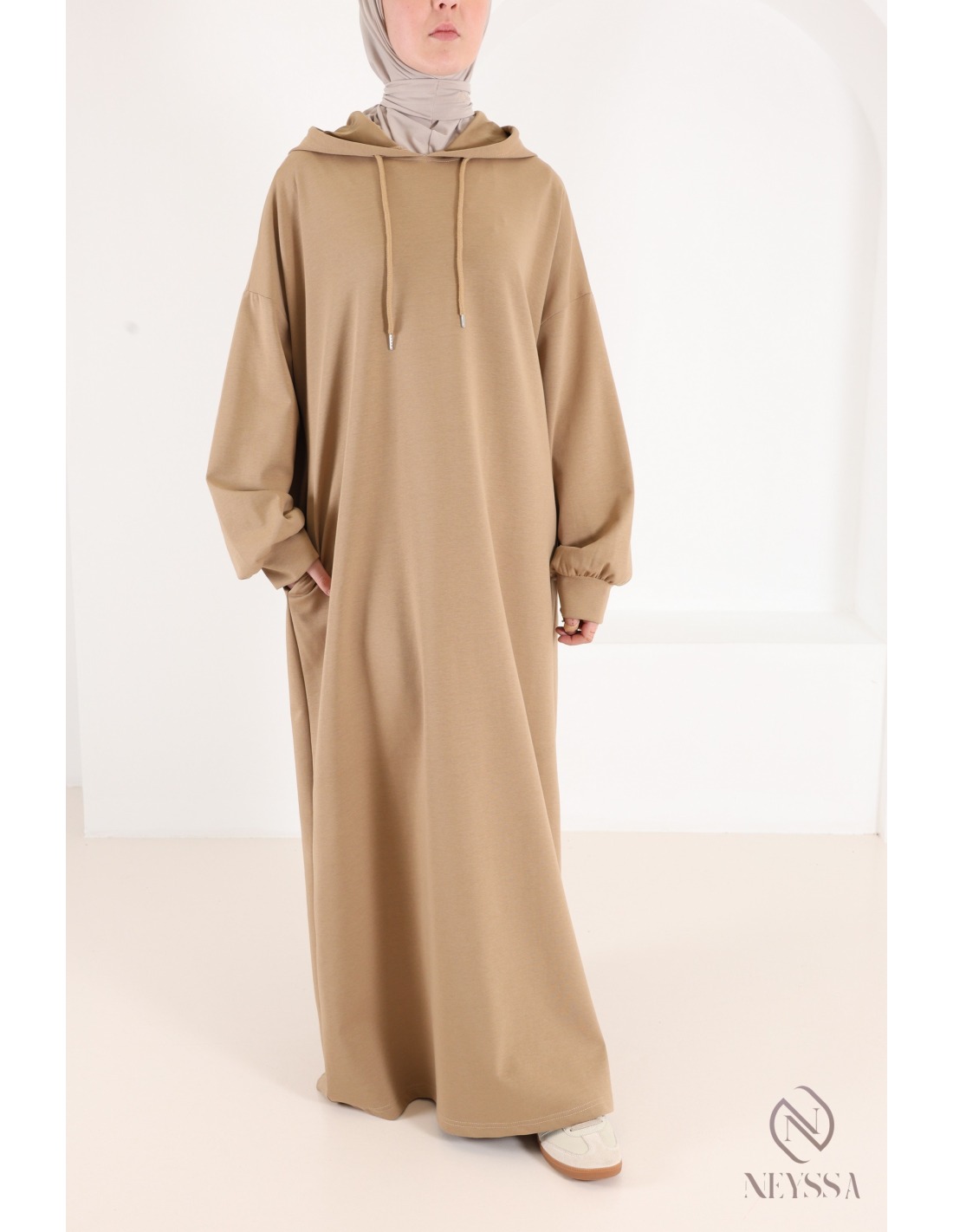 - Sportlicher Stil: Dieses lange Sweatkleid wurde entworfen, um den Sport-Stil perfekt mit den Anforderungen der Modest Fashion zu verbinden.