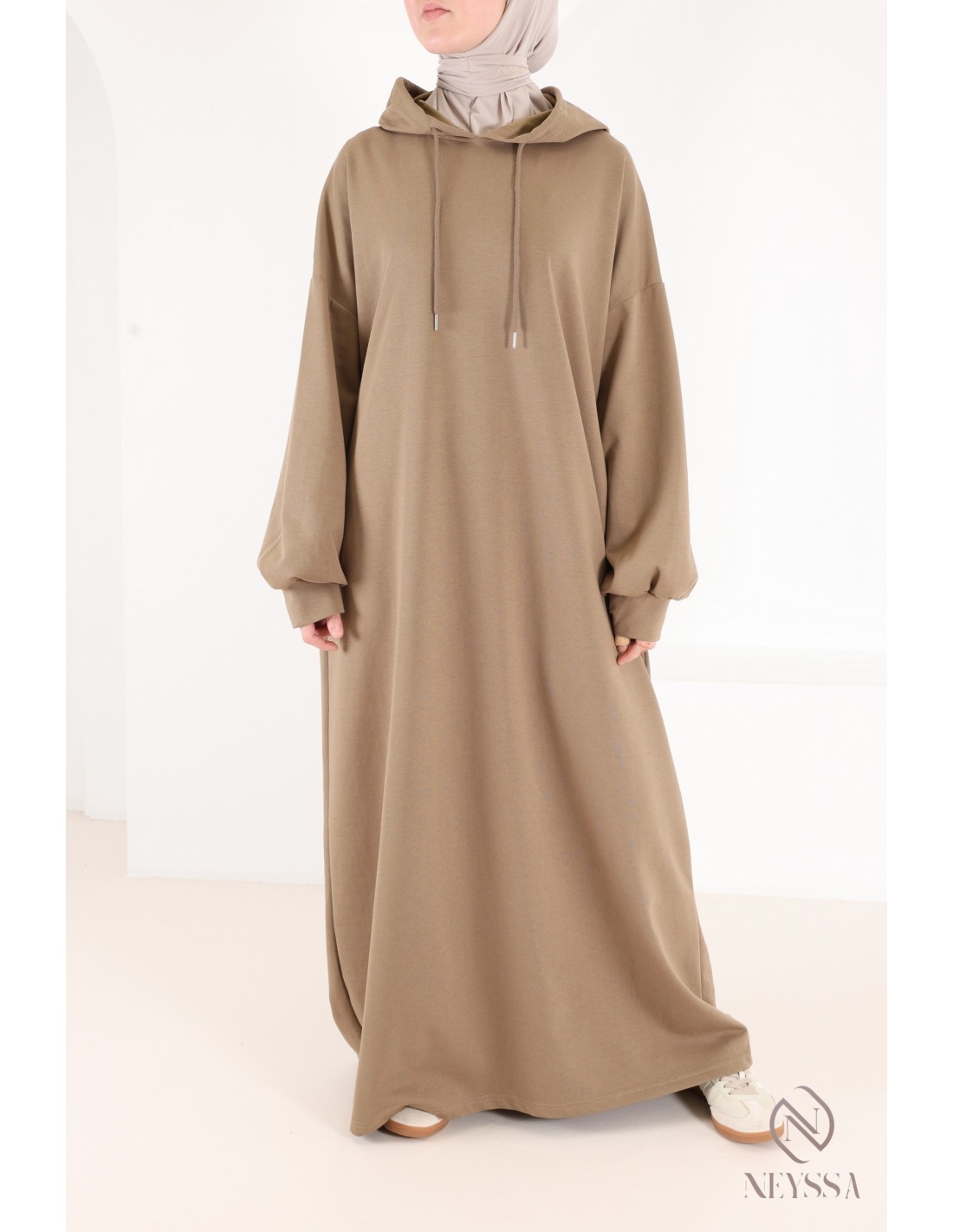 Langes Kleid im Hoodie-Stil mit Kordelzug : Sportoutfits für Damen mit Kopftuch