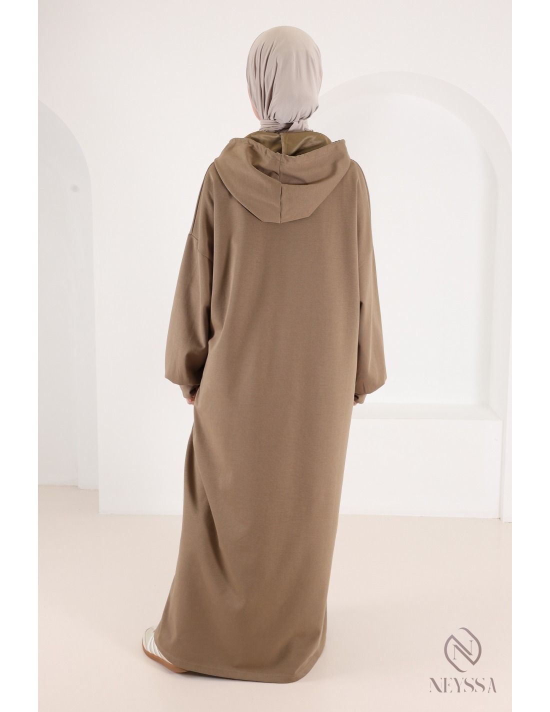 - Sportlicher Stil: Dieses lange Sweatkleid wurde entworfen, um den Sport-Stil perfekt mit den Anforderungen der Modest Fashion zu verbinden.