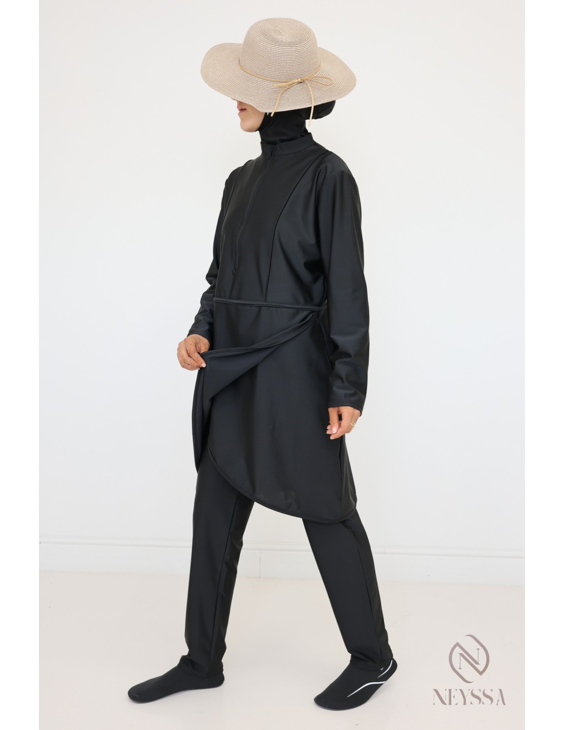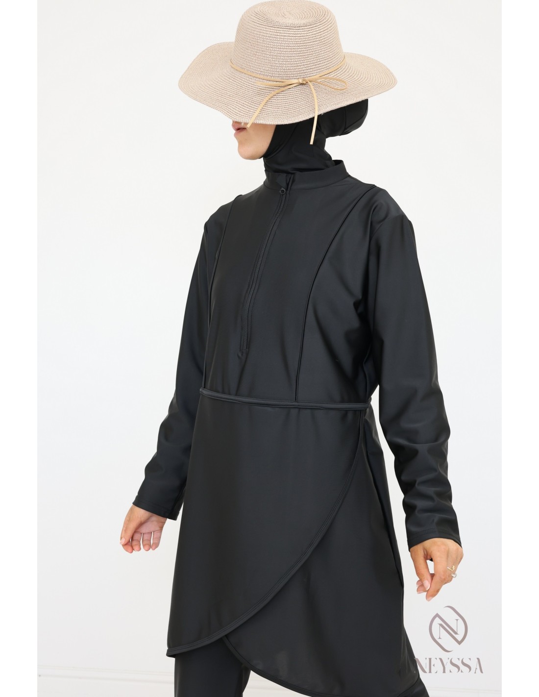 Schwarzer dreiteiliger Burkini für Damen ideal zum Baden.