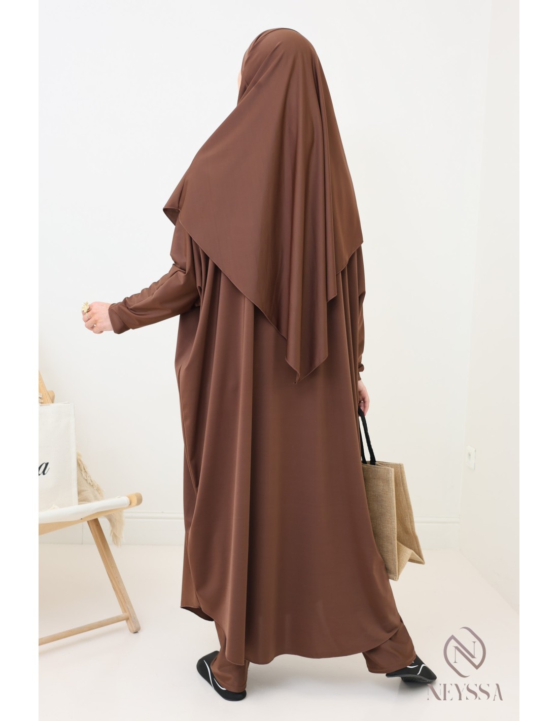 Jilbab Chocolat 3-teiliges langes Gewand + palazzo + khimar für Damen