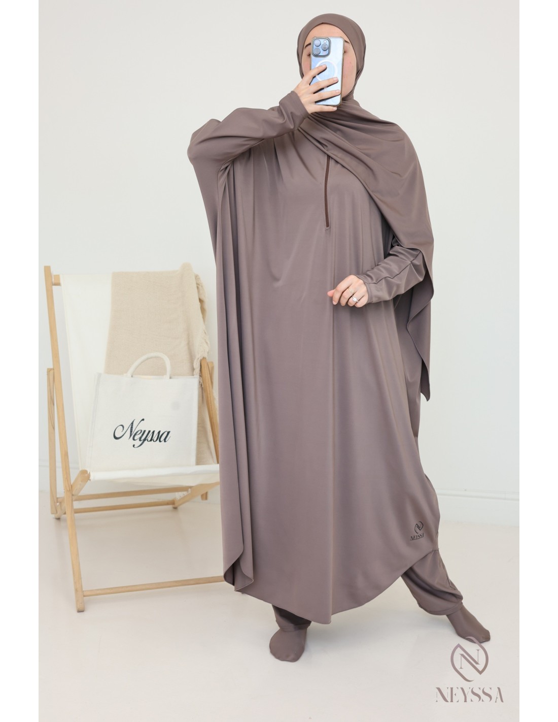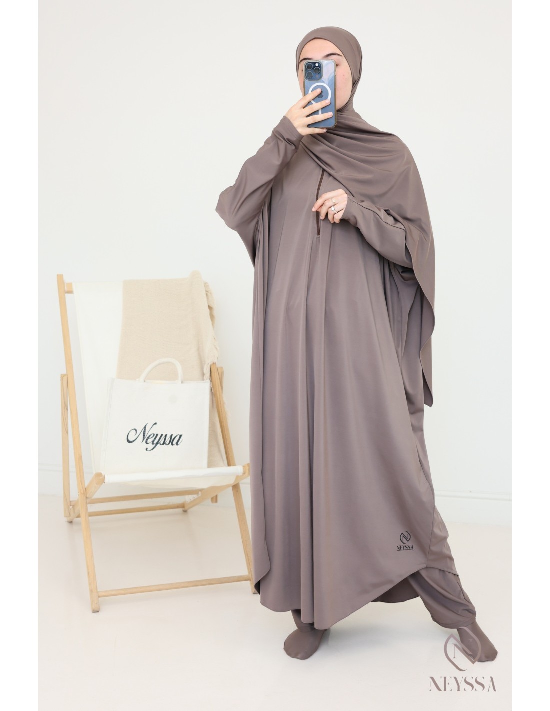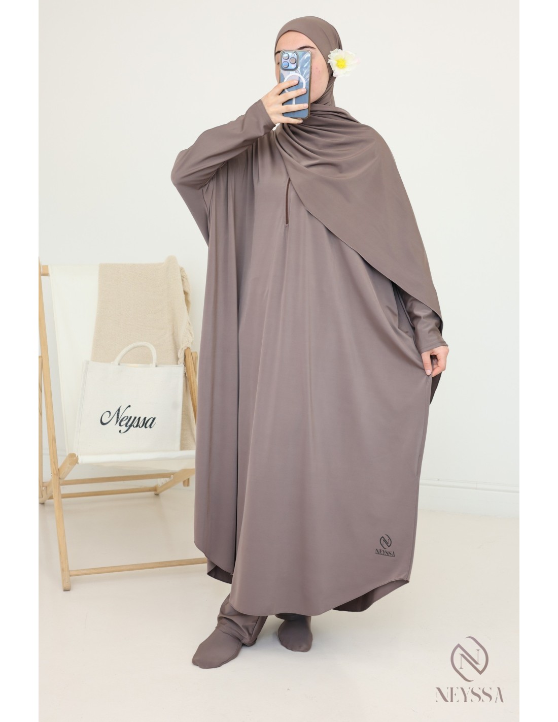 Modest Damen Bade-Jilbab in Dunkeltaupe