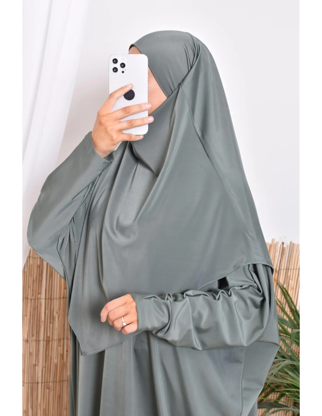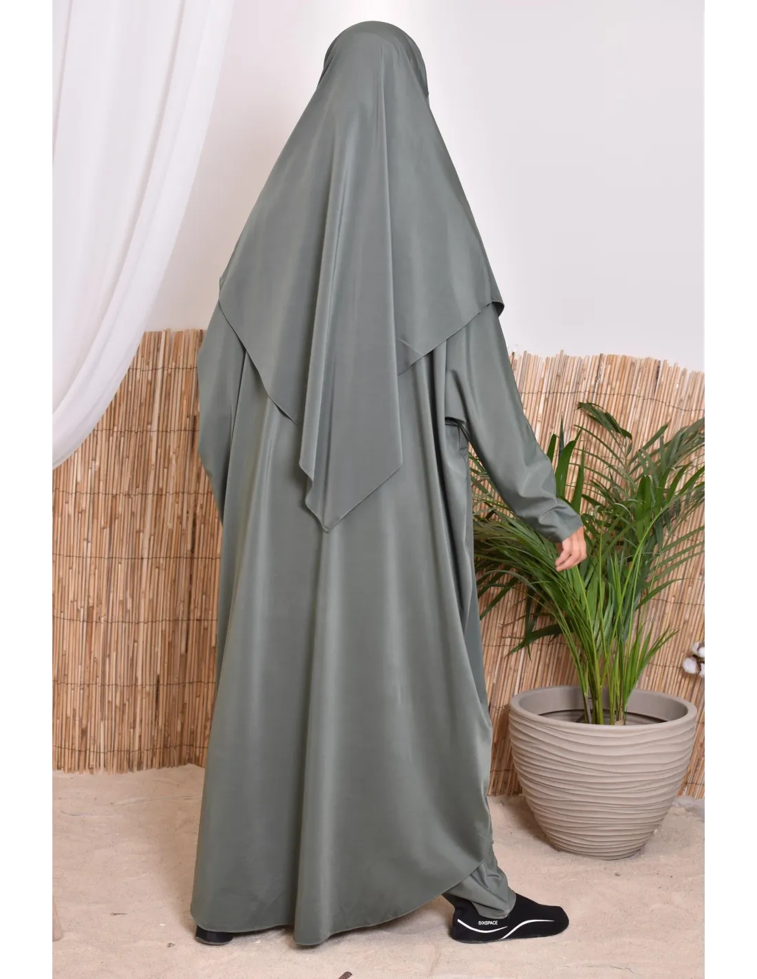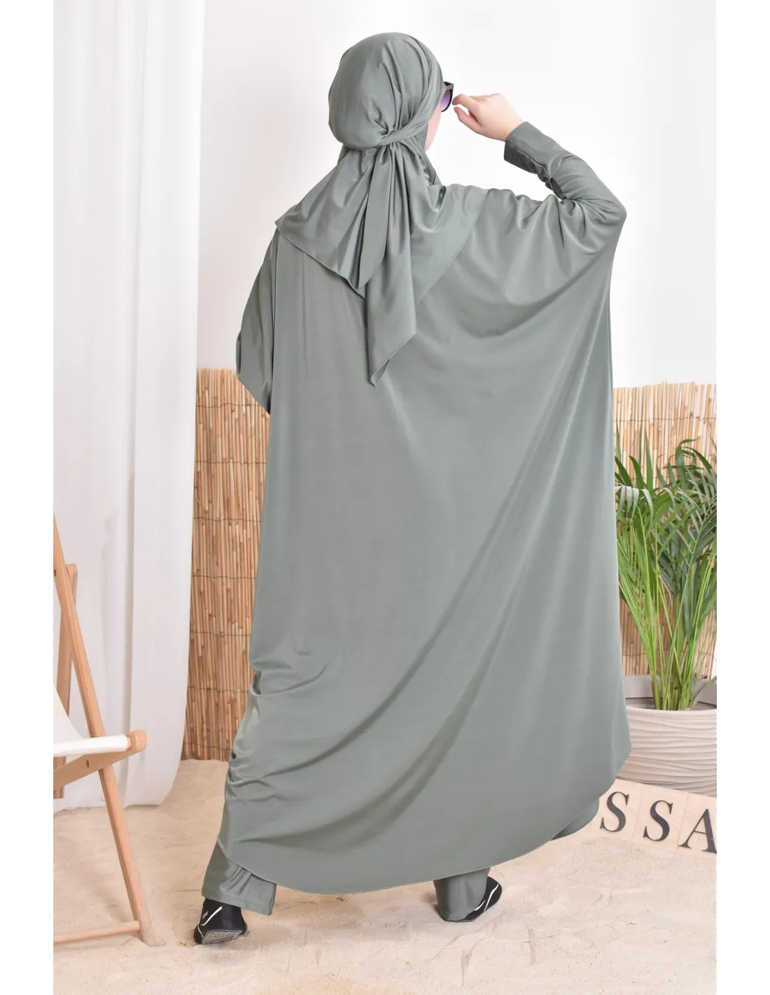 Hauptmerkmale des khakifarbenen Bade-Jilbab: