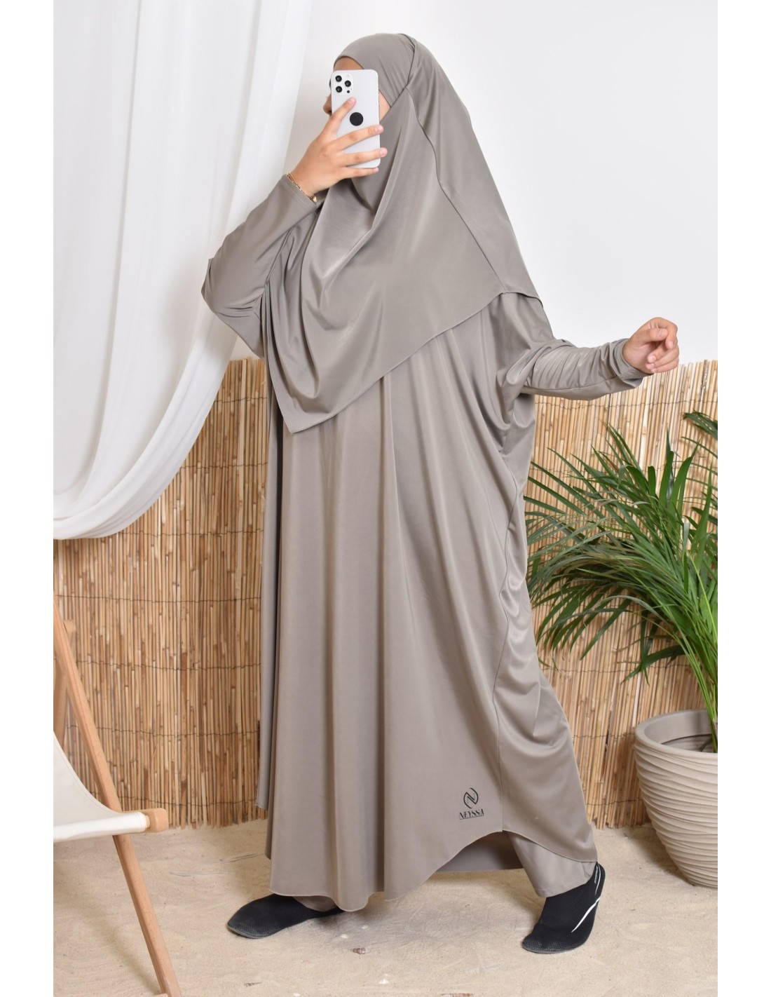 Genießen Sie Ihre Wassersportaktivitäten in vollem Vertrauen mit dem Bade-Jilbab mit Khimar von Neyssa. Mit seiner Kombination aus Stil, Komfort und Bescheidenheit ist er die ideale Option für muslimische Frauen, die ihre sportlichen Aktivitäten mit ihren Werten in Einklang bringen möchten. Setzen Sie ein modisches Statement und entscheiden Sie sich für Neyssa, die Marke, die die Schönheit der Schamhaftigkeit zelebriert.