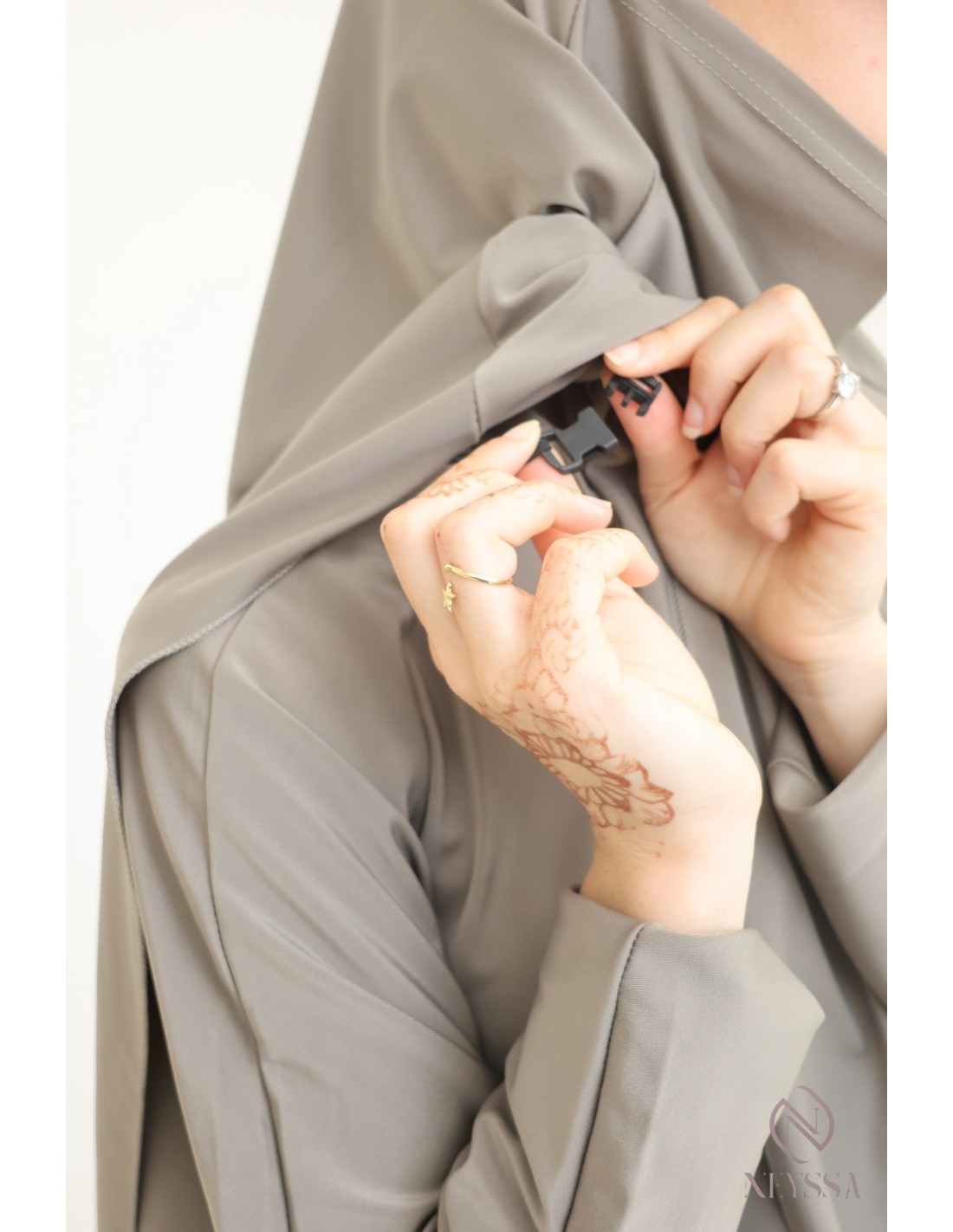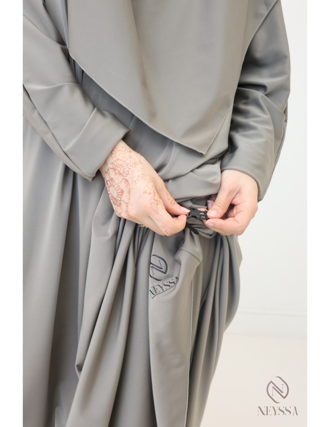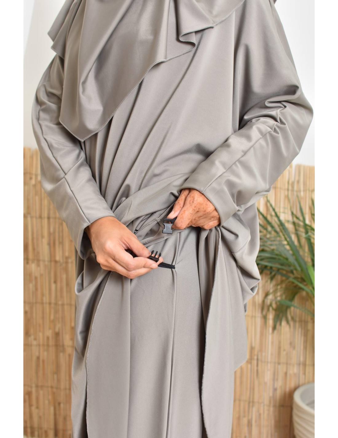 • Tunika/Khimar-Befestigung: Wenn du schwimmen gehst, klippse die Befestigung zwischen Tunika und Khimar ein, damit sie nicht hochrutscht
