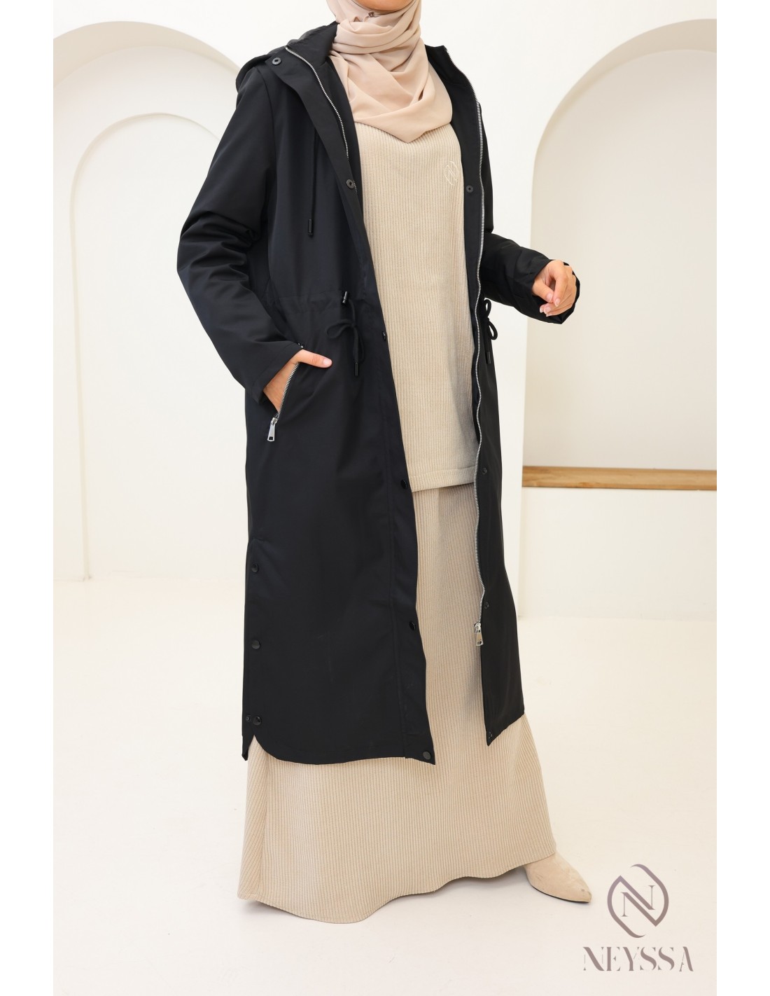 Diese lange Hijabi-Jacke mit modernem, schlichtem Schnitt wird Ihnen zweifellos gefallen.