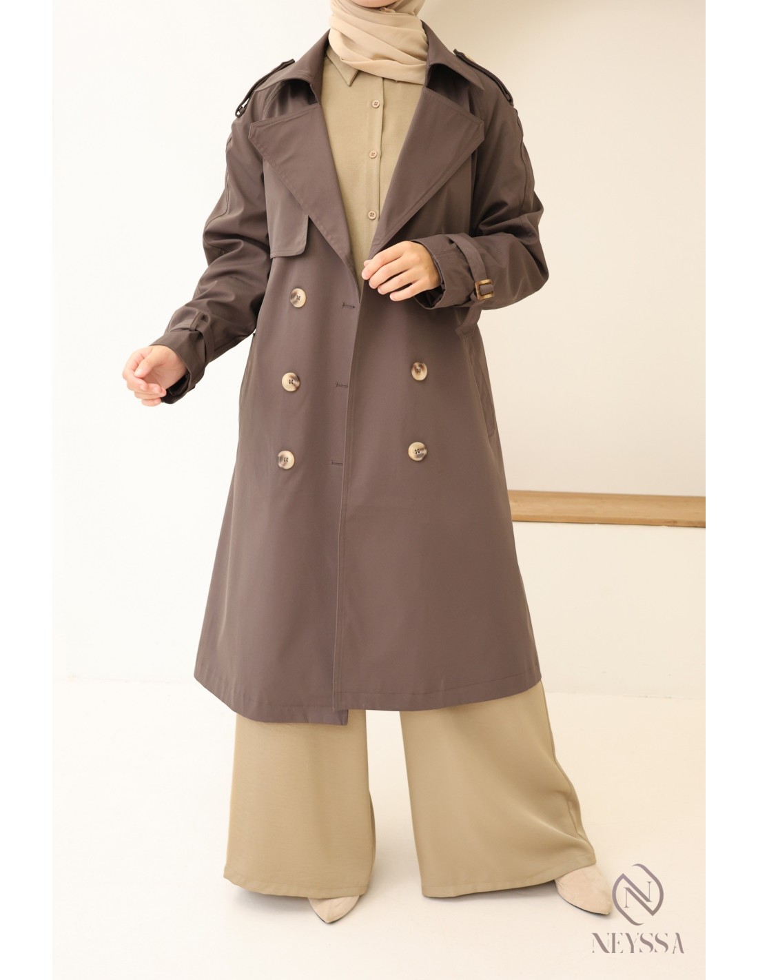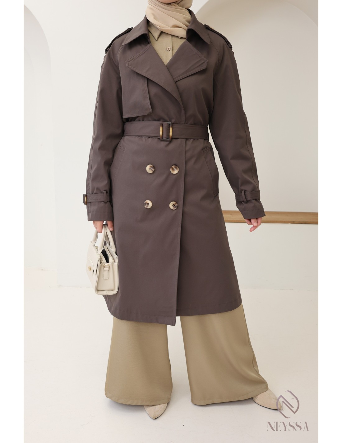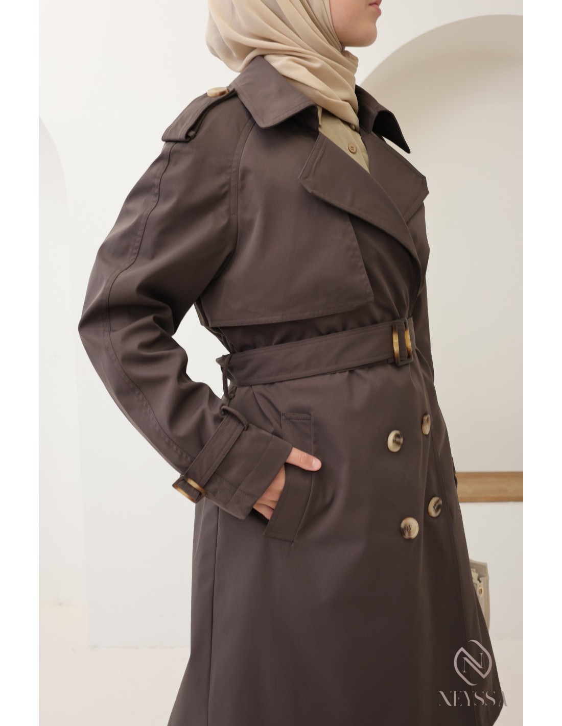 Dieser Trenchcoat für Hijabi-Frauen vereint dank seiner sorgfältigen Verarbeitung Eleganz und Funktionalität: