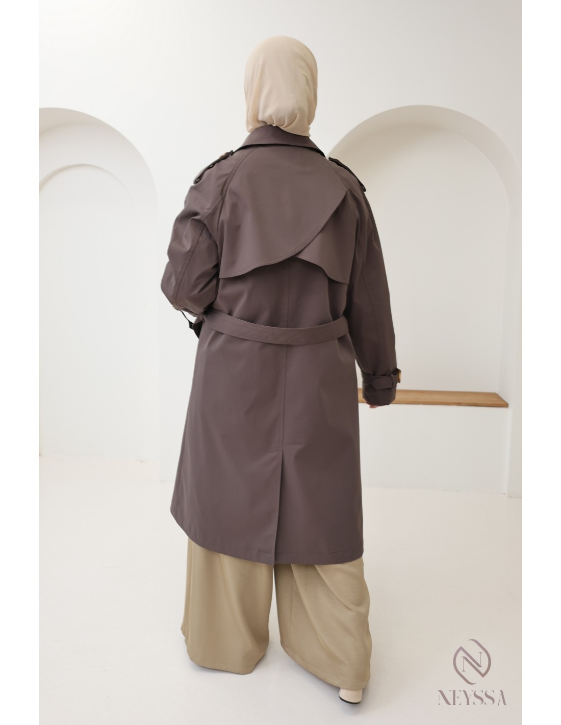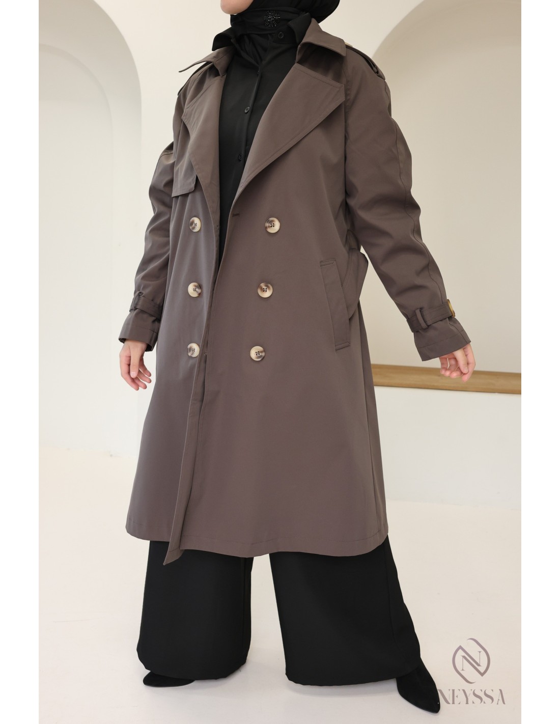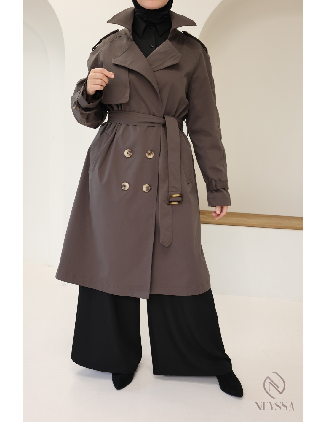 Dieser Trenchcoat für Hijabi-Frauen vereint dank seiner sorgfältigen Verarbeitung Eleganz und Funktionalität: