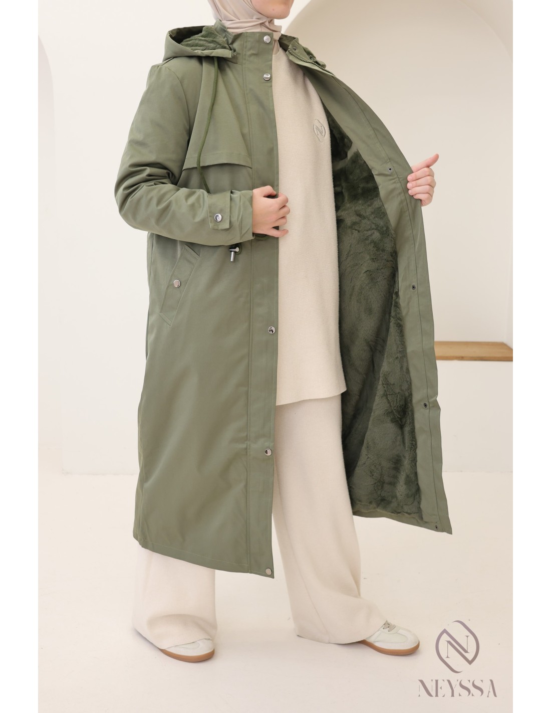 Langer Damenparka mit Fellbesatz Flow Line Khaki