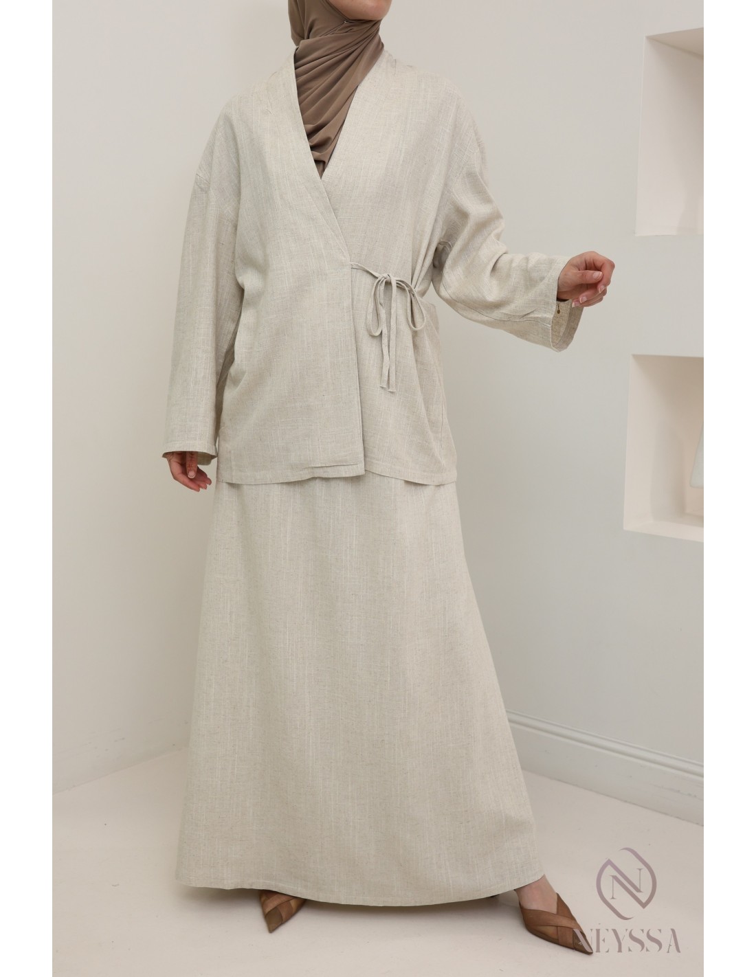Beiges Oberteil aus gekreuzter Leinenstoffe Flavia